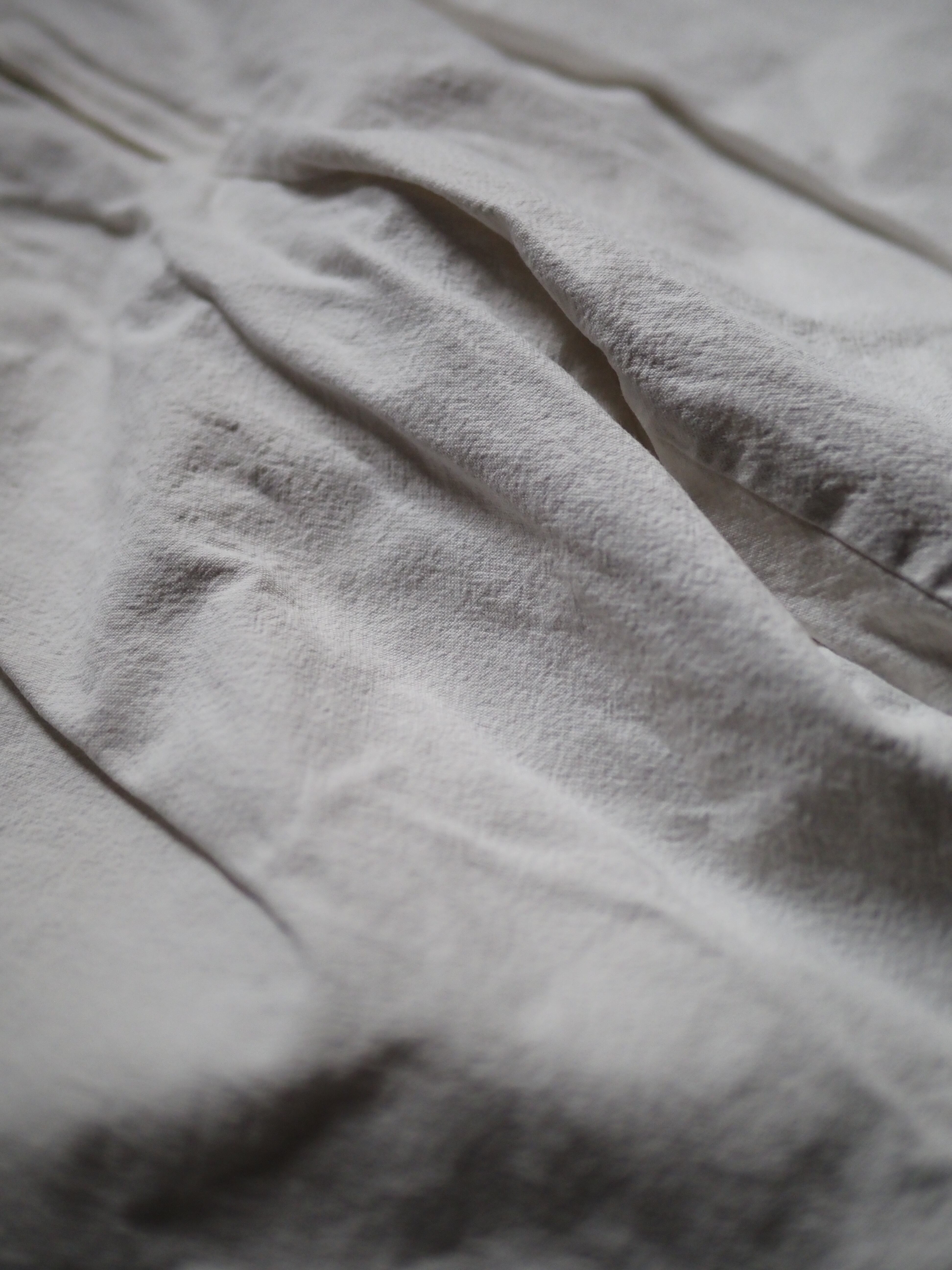 素材表記が薄れてしまっており、全く読み取れませんがおそらくコットンリネンかと思います。