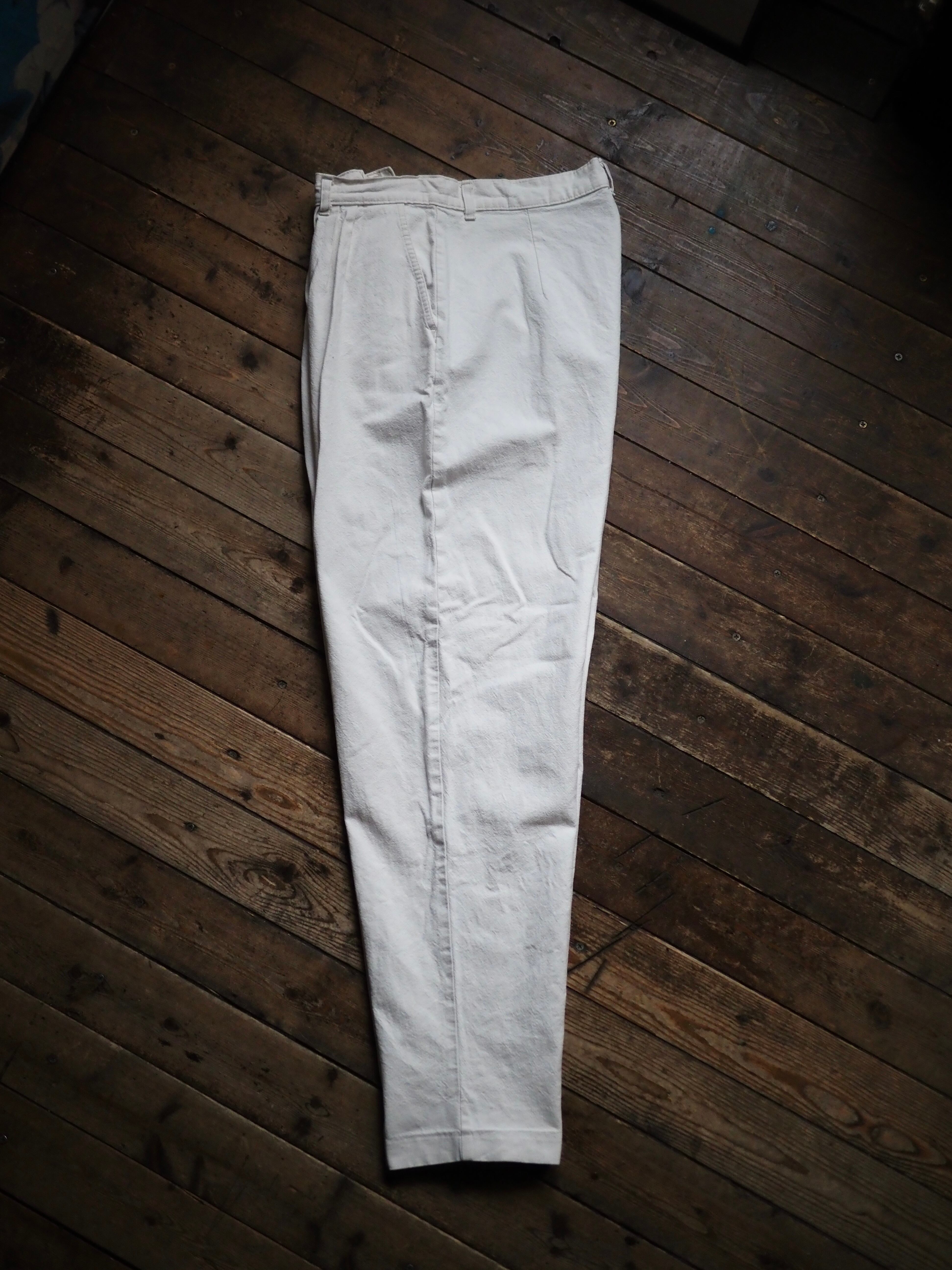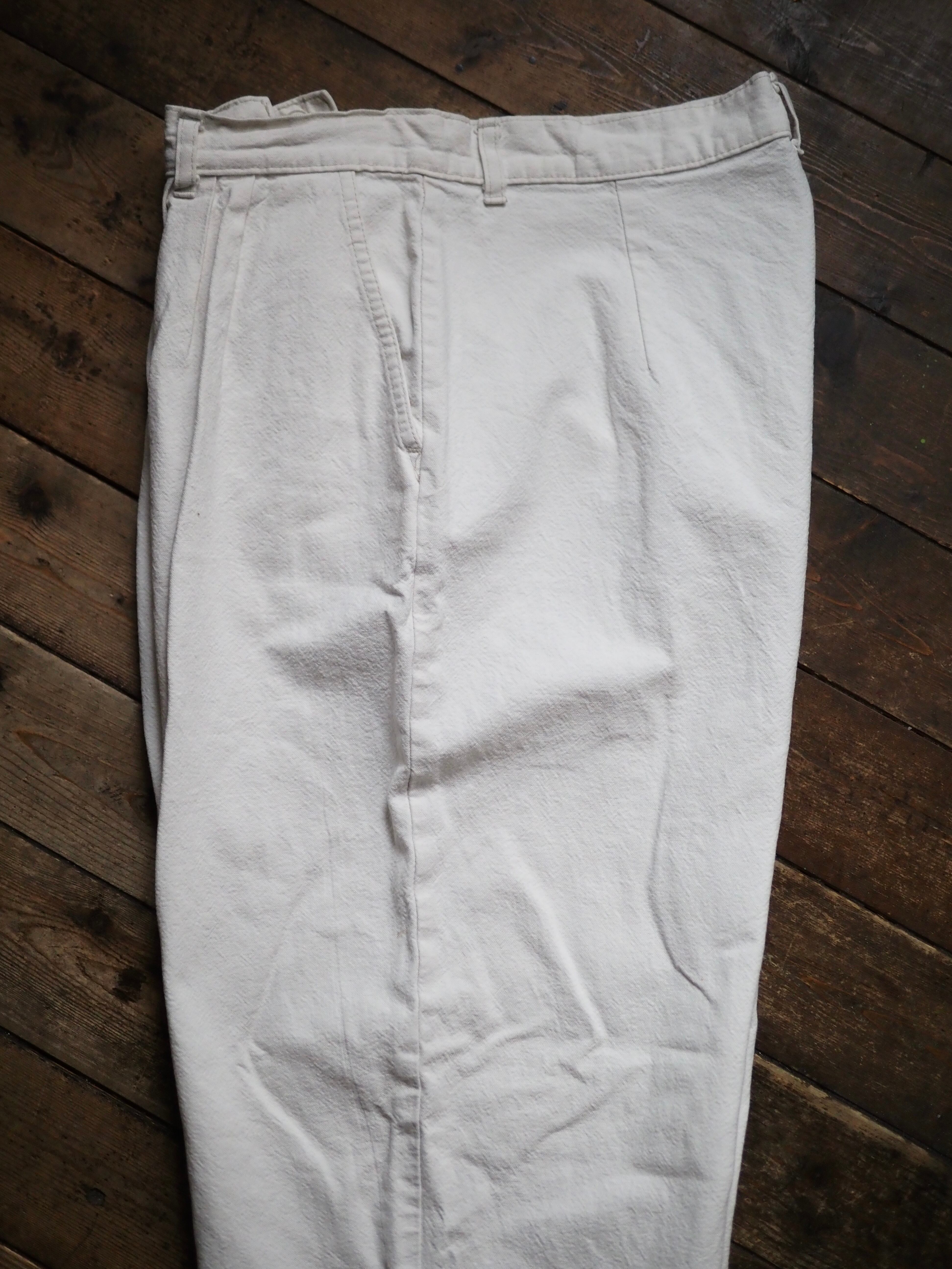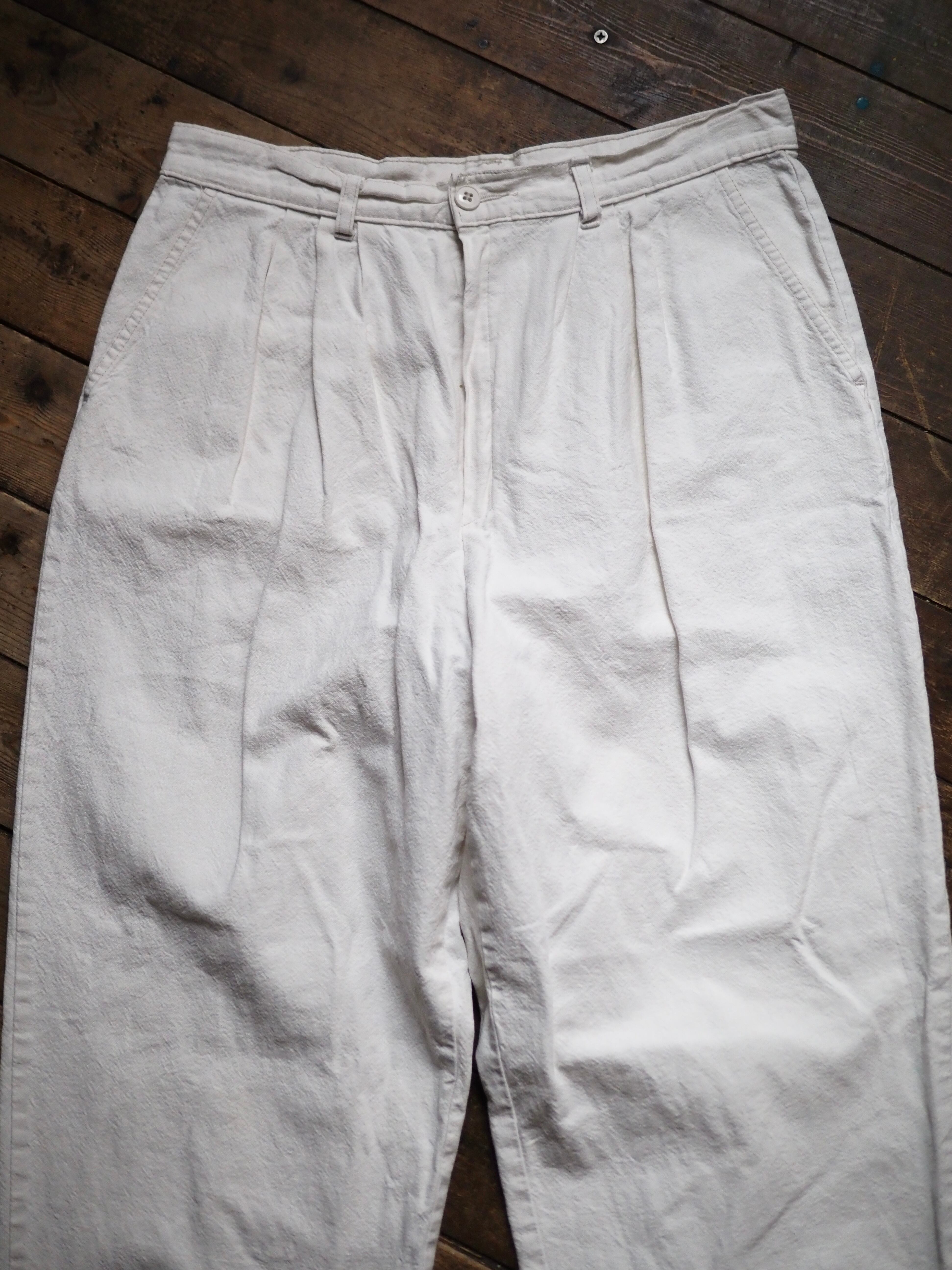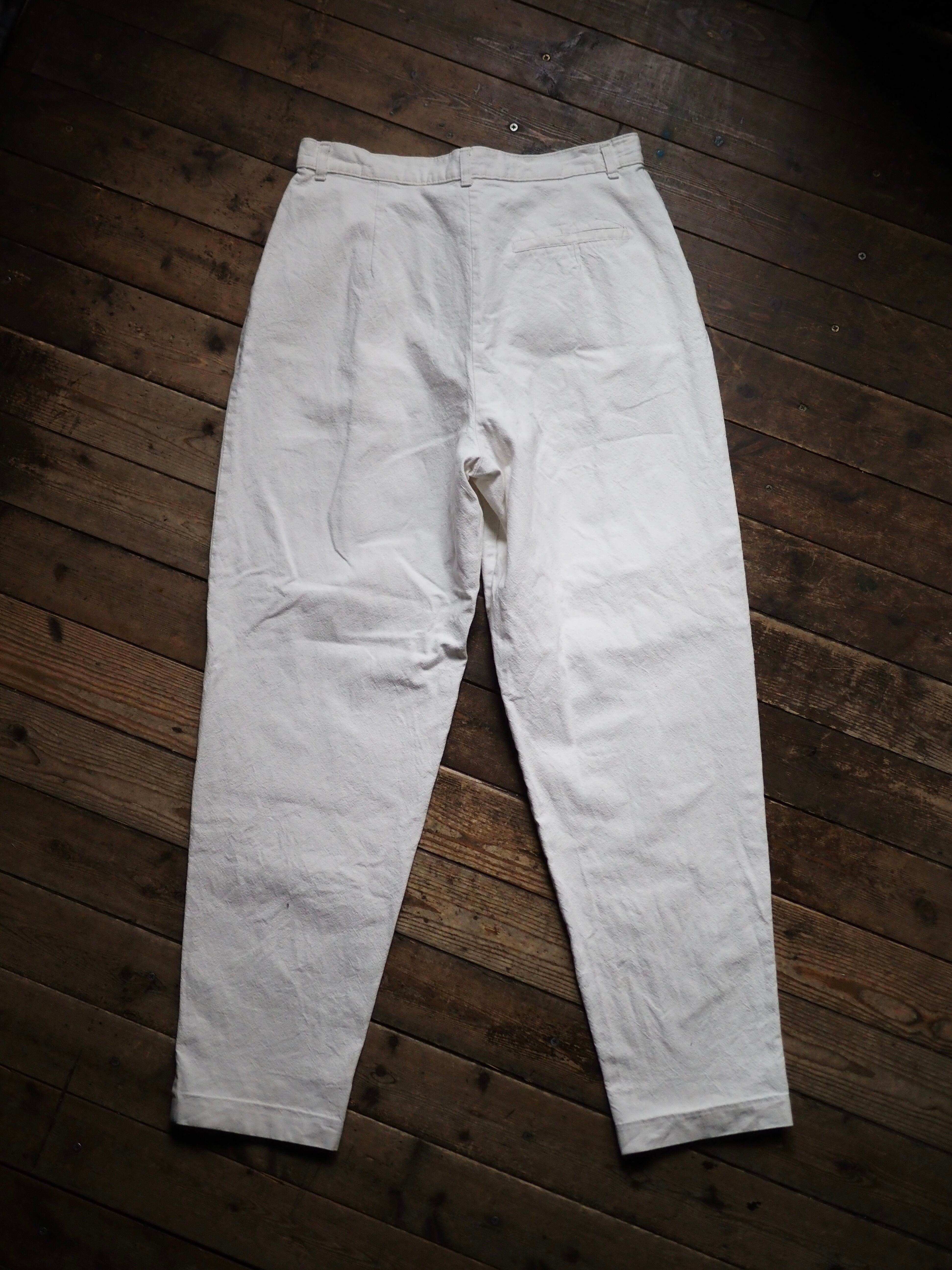 Euro 1980’s- White Cotton Linen? Trousers W30 L29.5 ヨーロッパ オールド コットン リネン トラウザー スラックス ホワイト