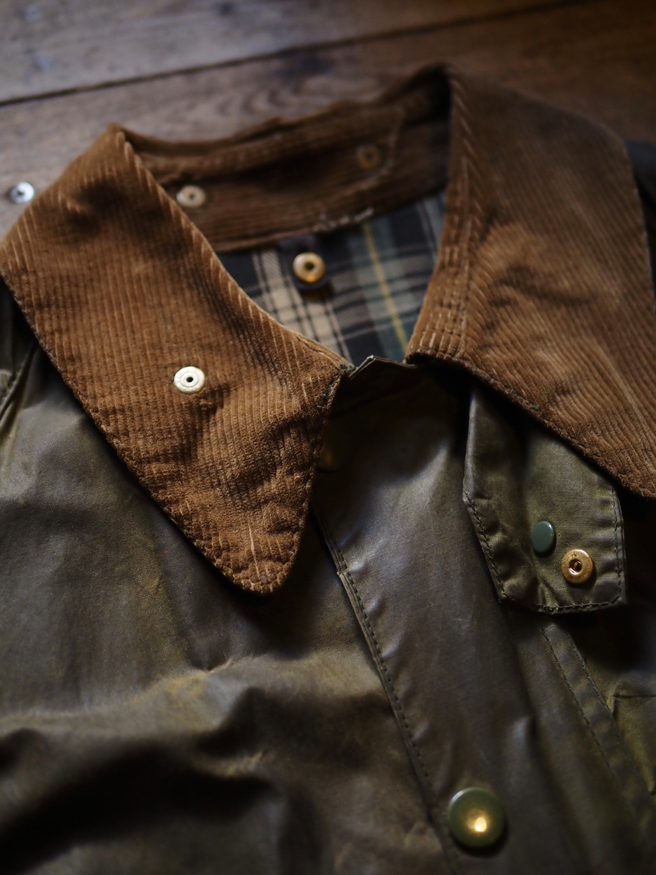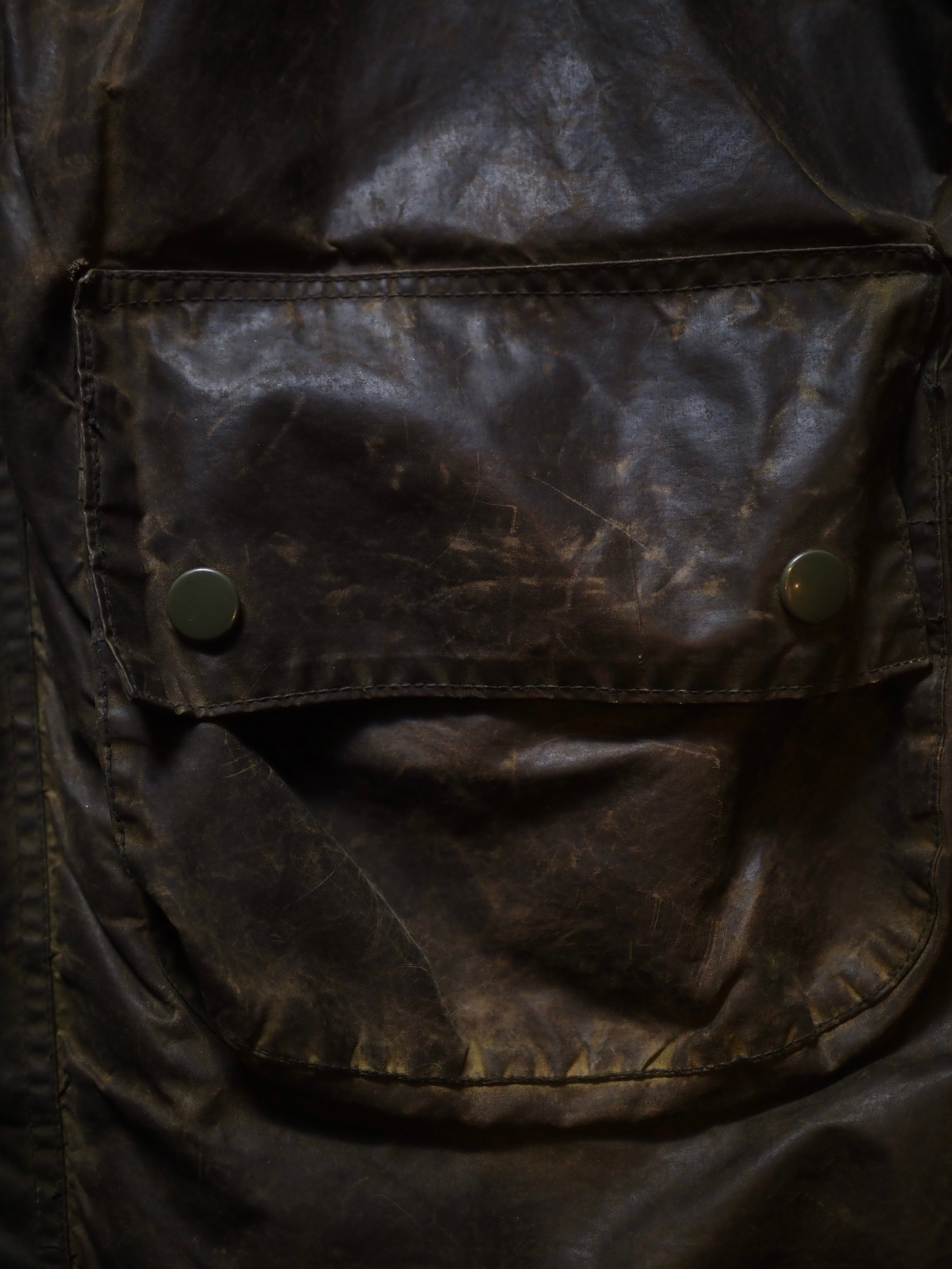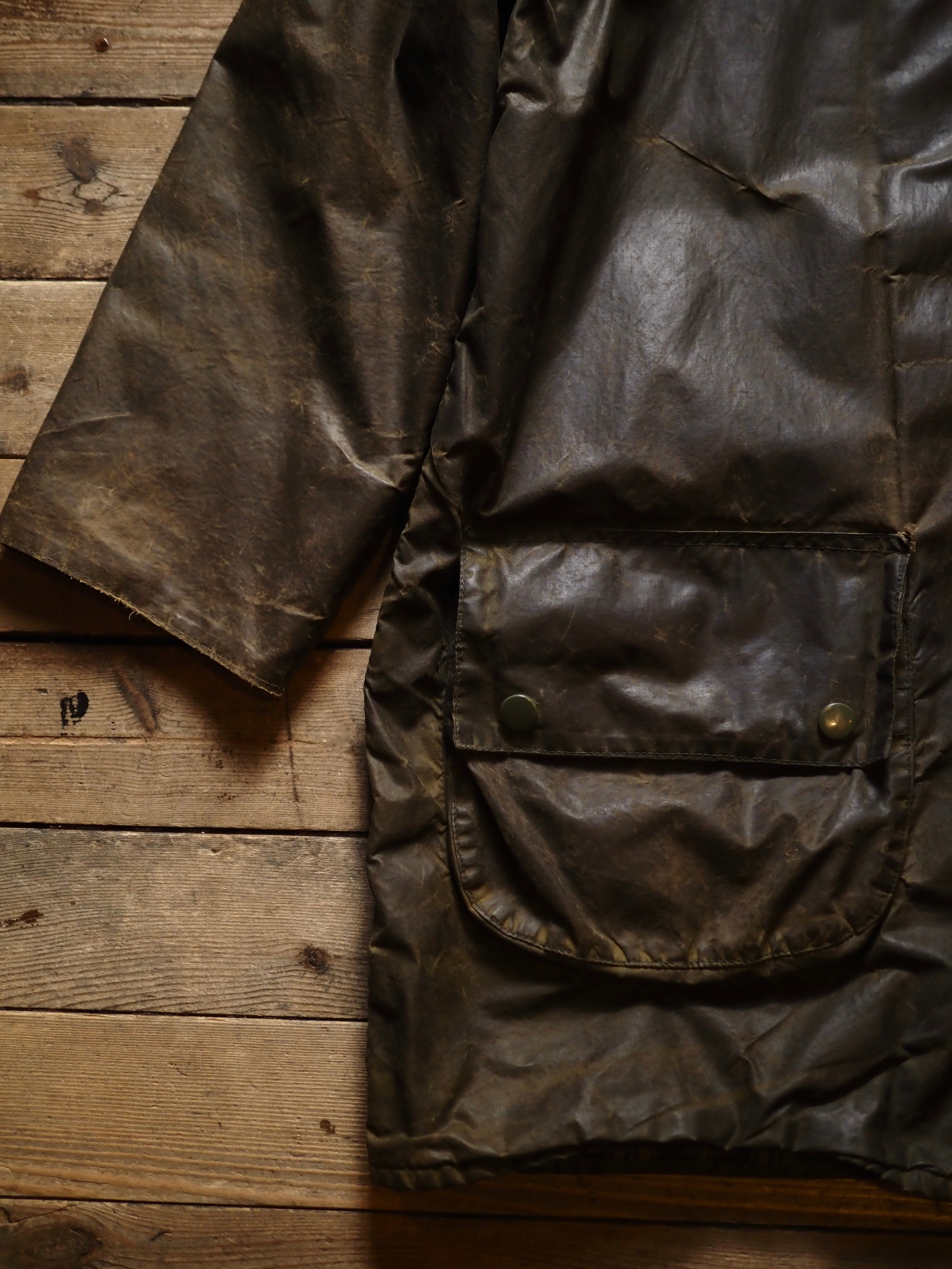 オイルドジャケットにも関わらず、この時代のBarbourはレザーのような雰囲気を持ちます。