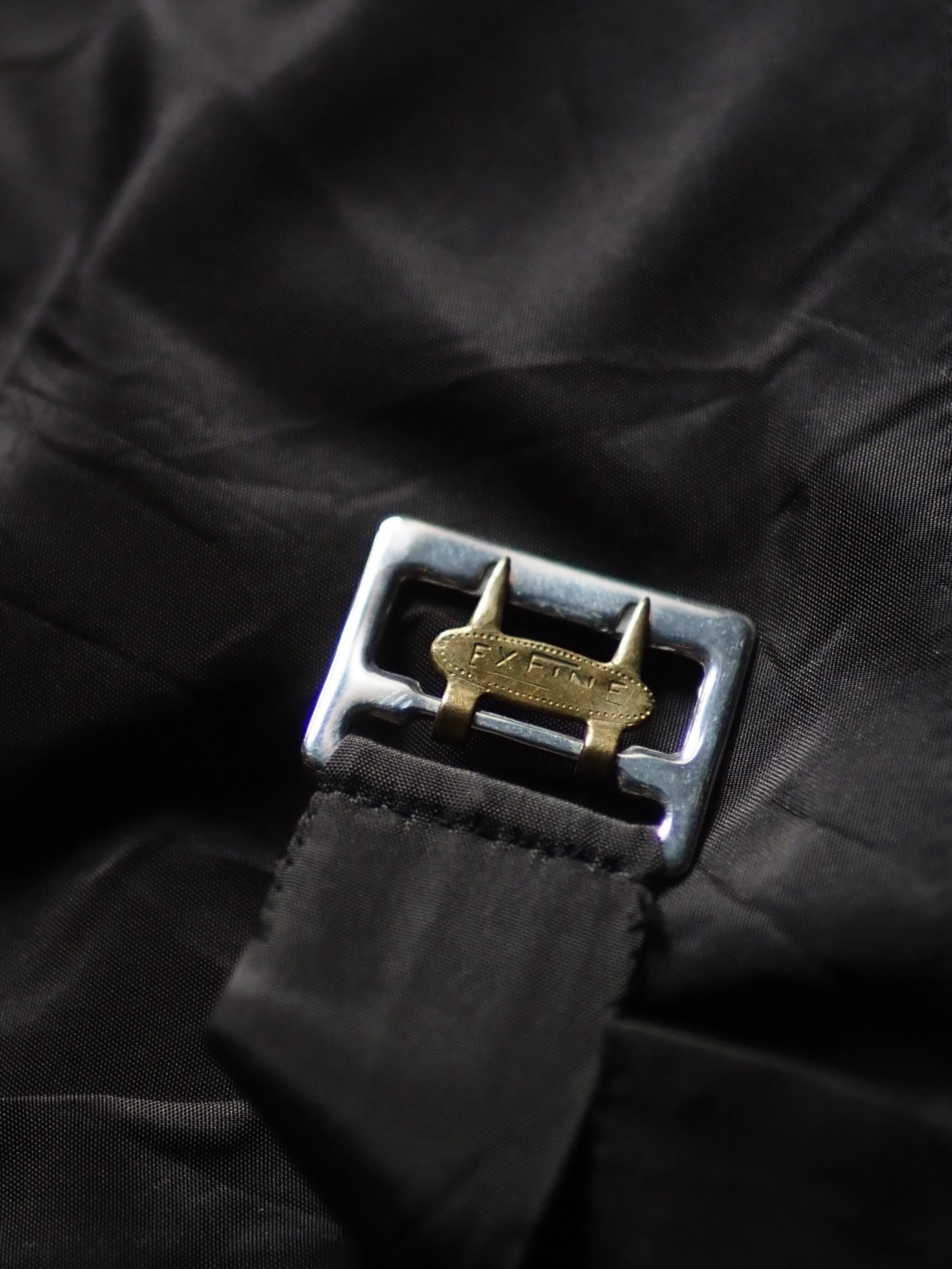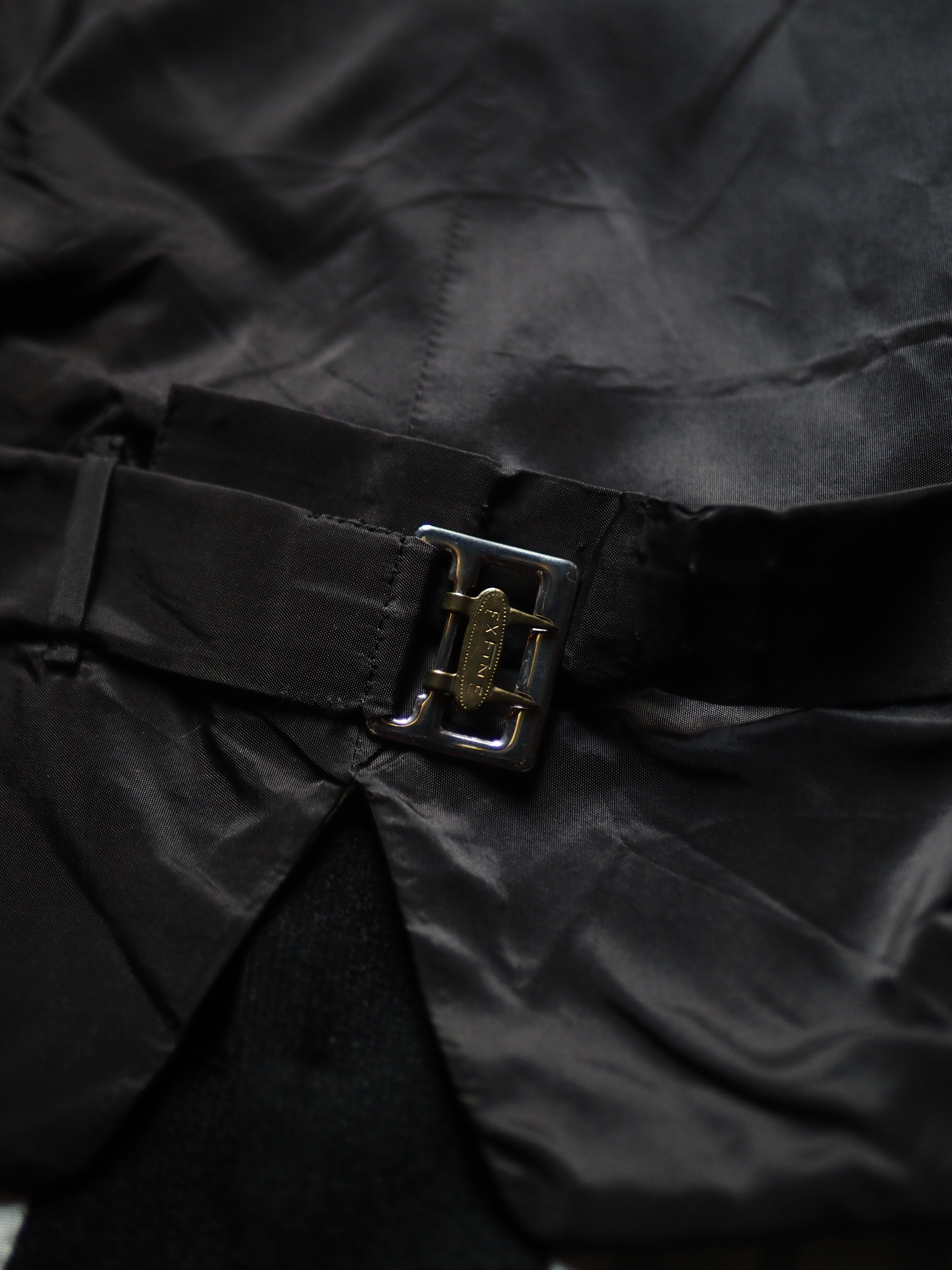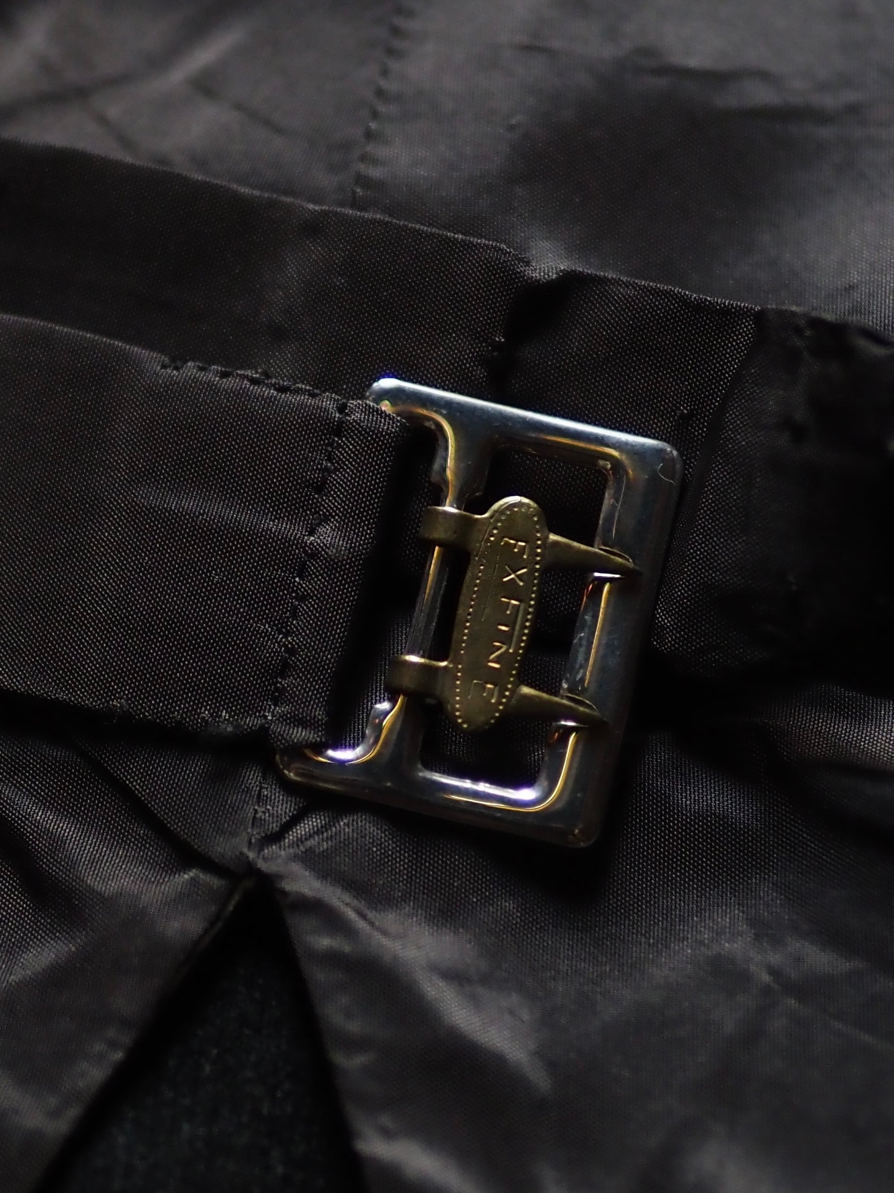 シンチバックパーツの刻印”FX FINE”しか手がかりがないゆえに具体的に特定できませんが、ストライプの裏地や遊びっ気のなさにUK物のような雰囲気は感じます。