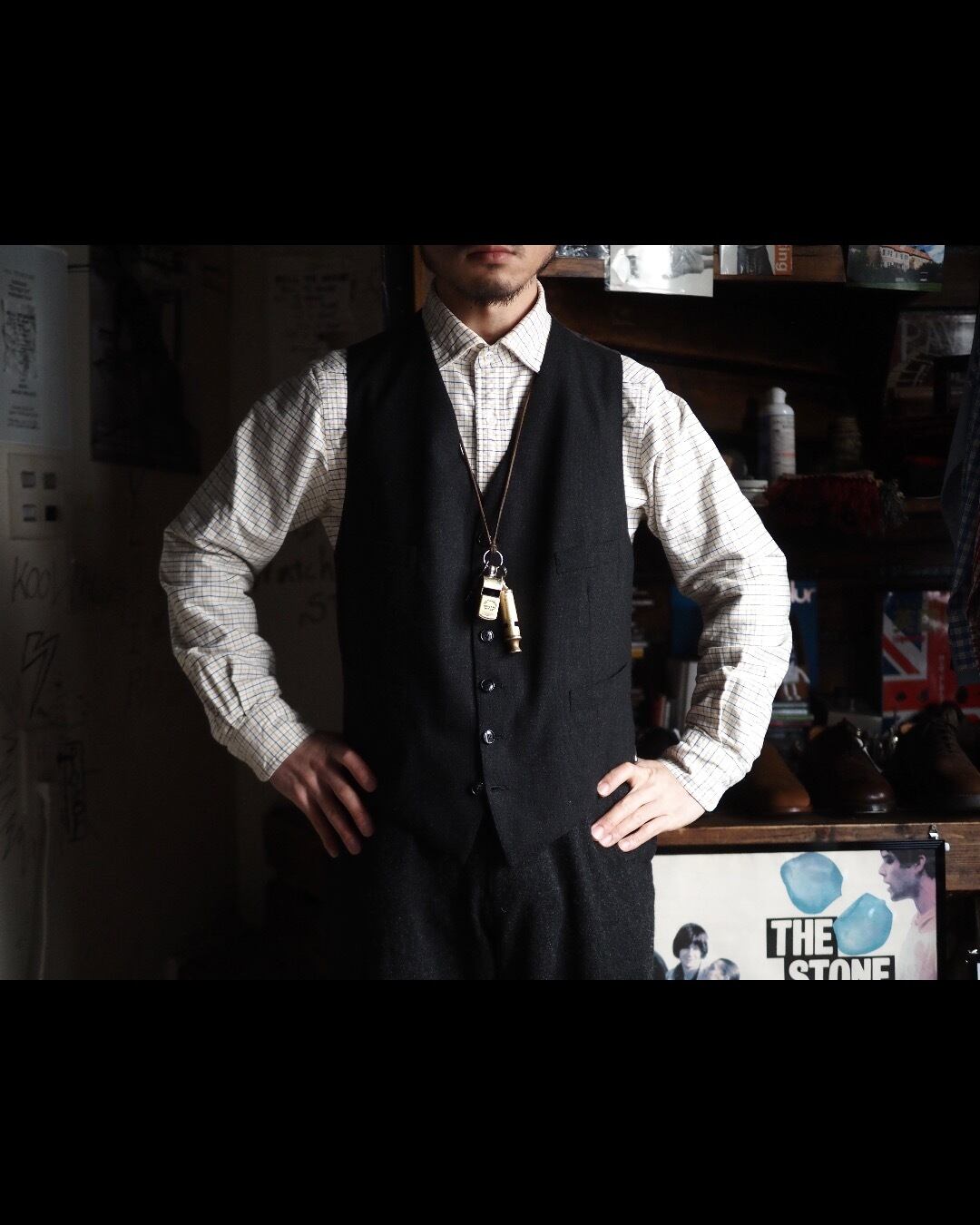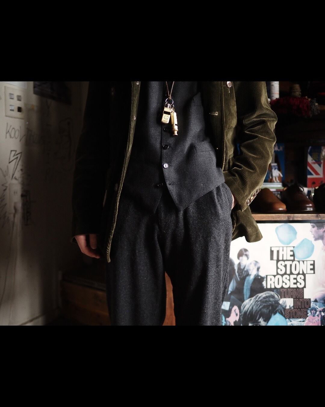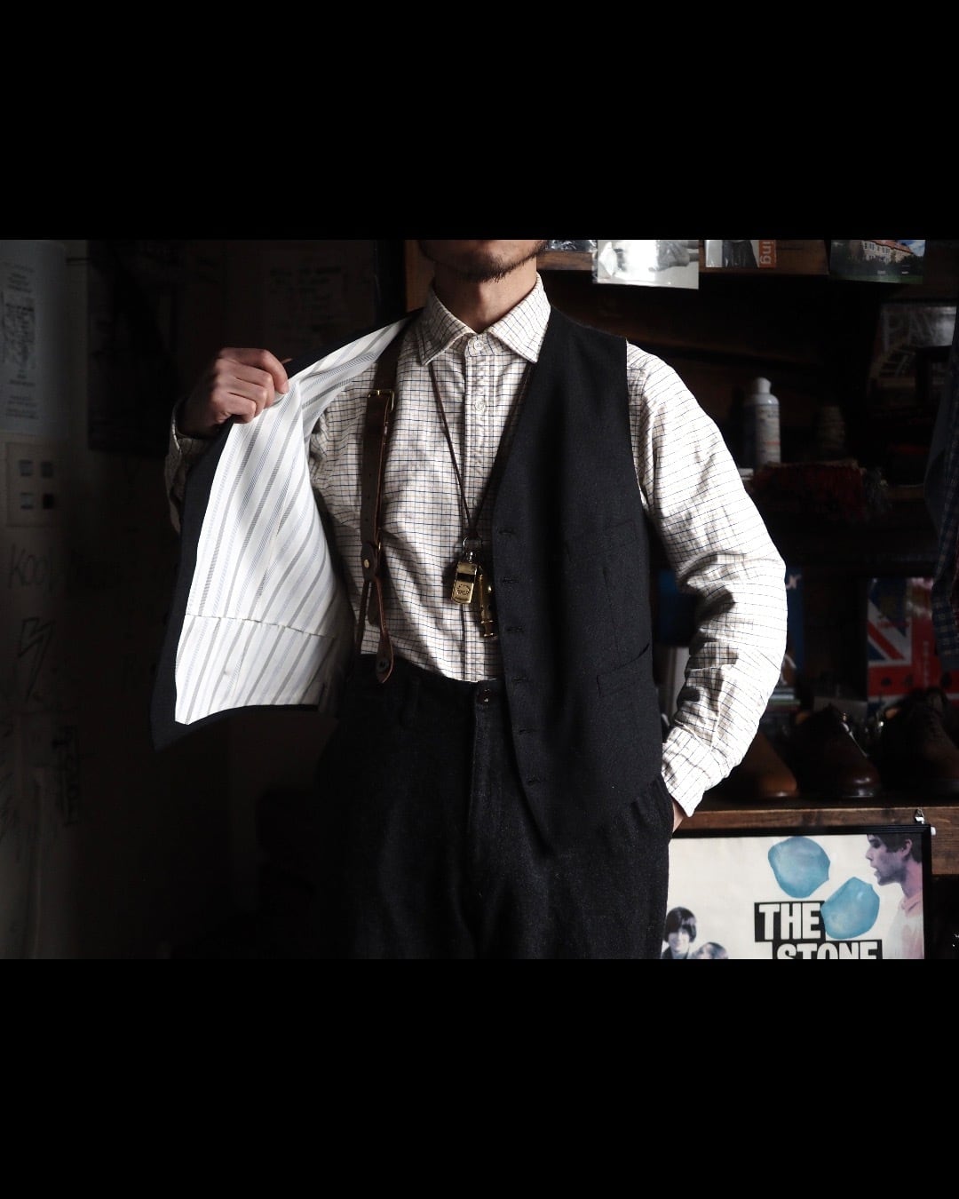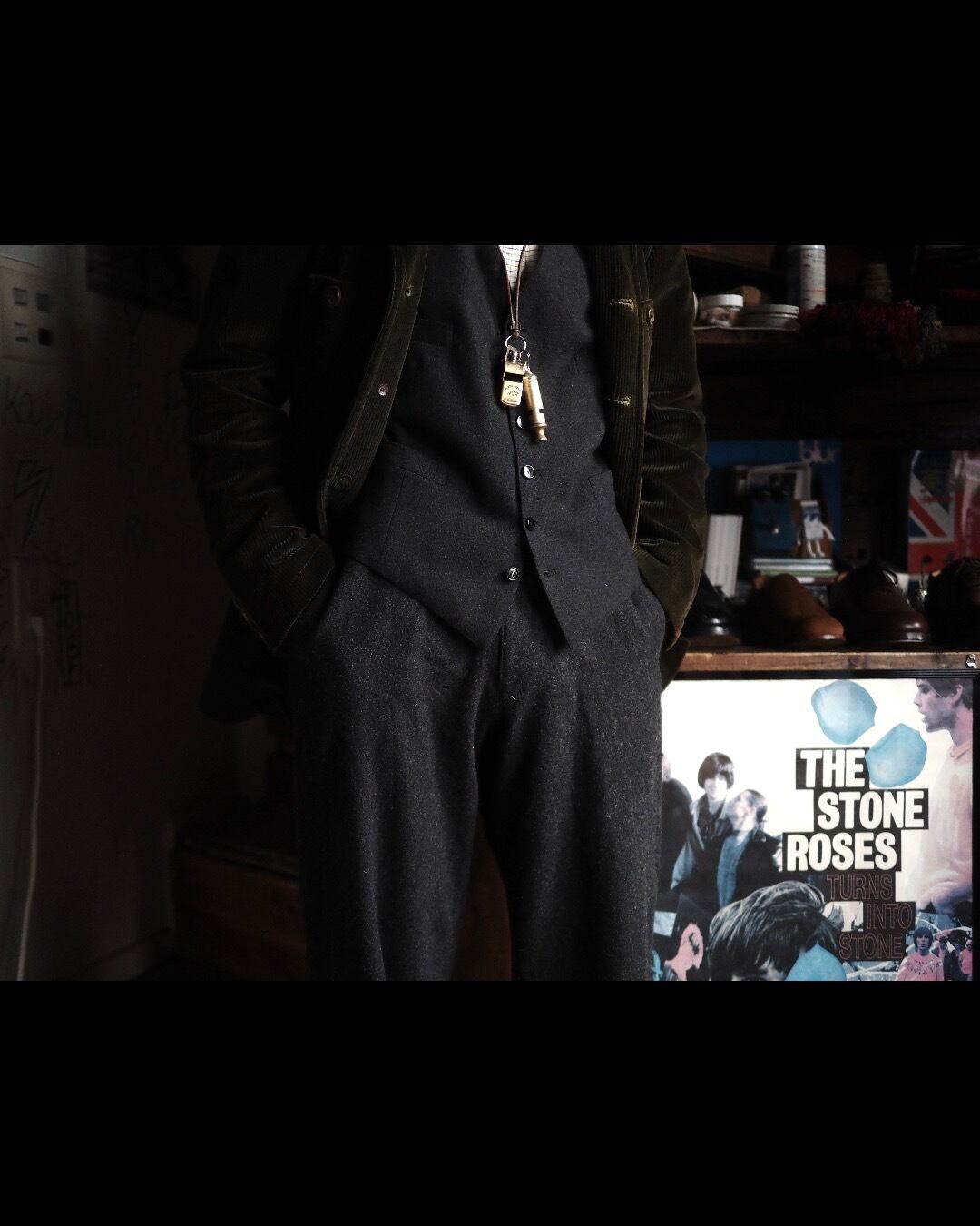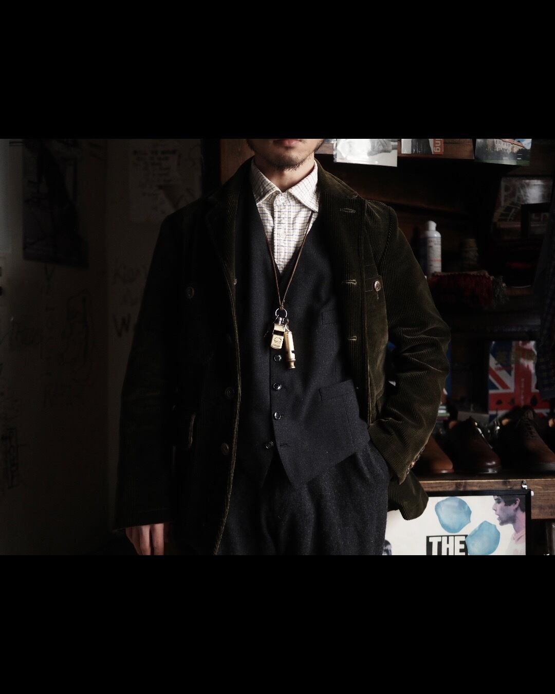 個人的にはガチガチのドレス、フォーマルスタイルではなく、1950’s以前のワーカーや庭師のような働く男の胴衣としてのイメージでコーディネートを組むのが好みです。