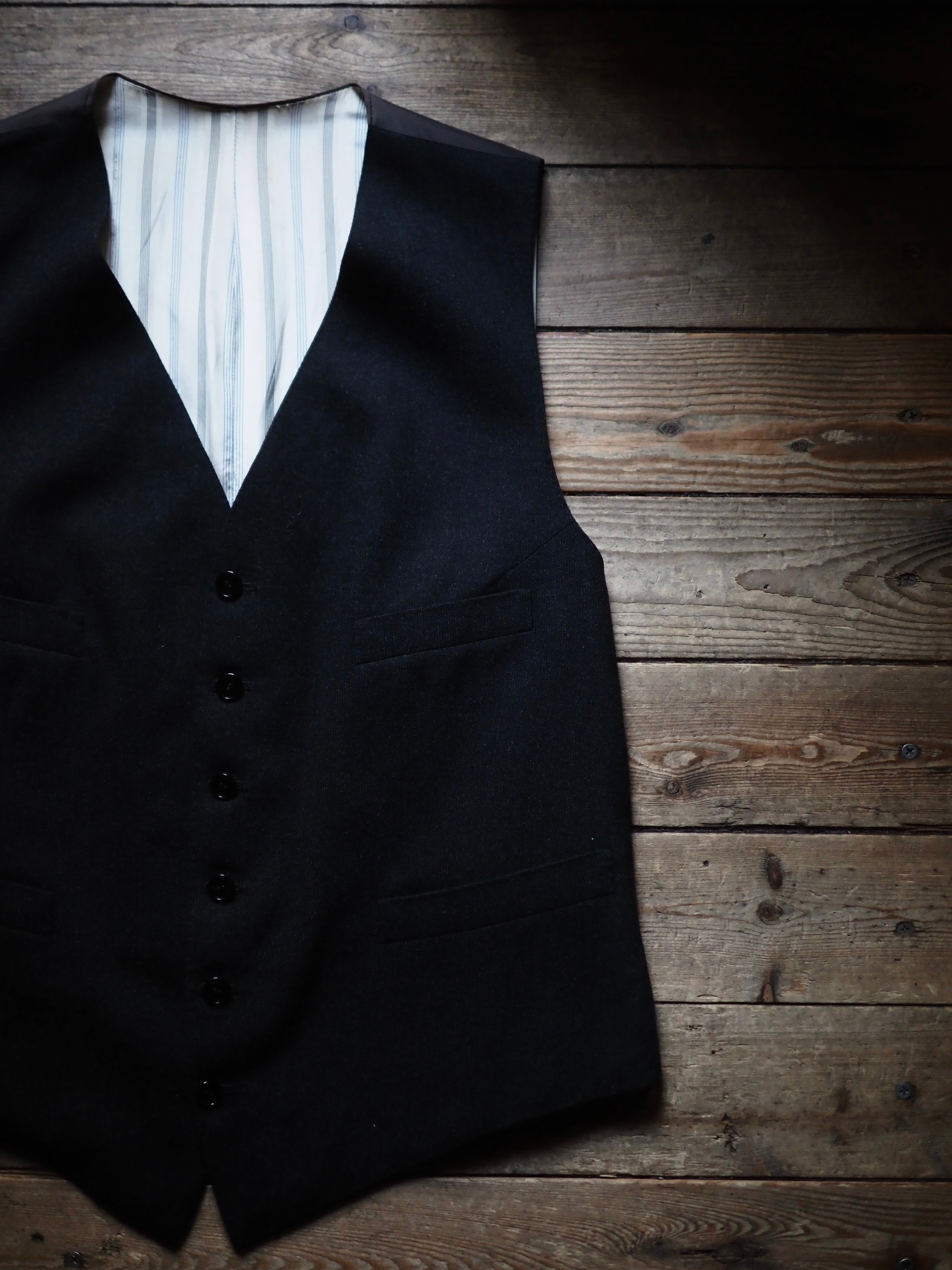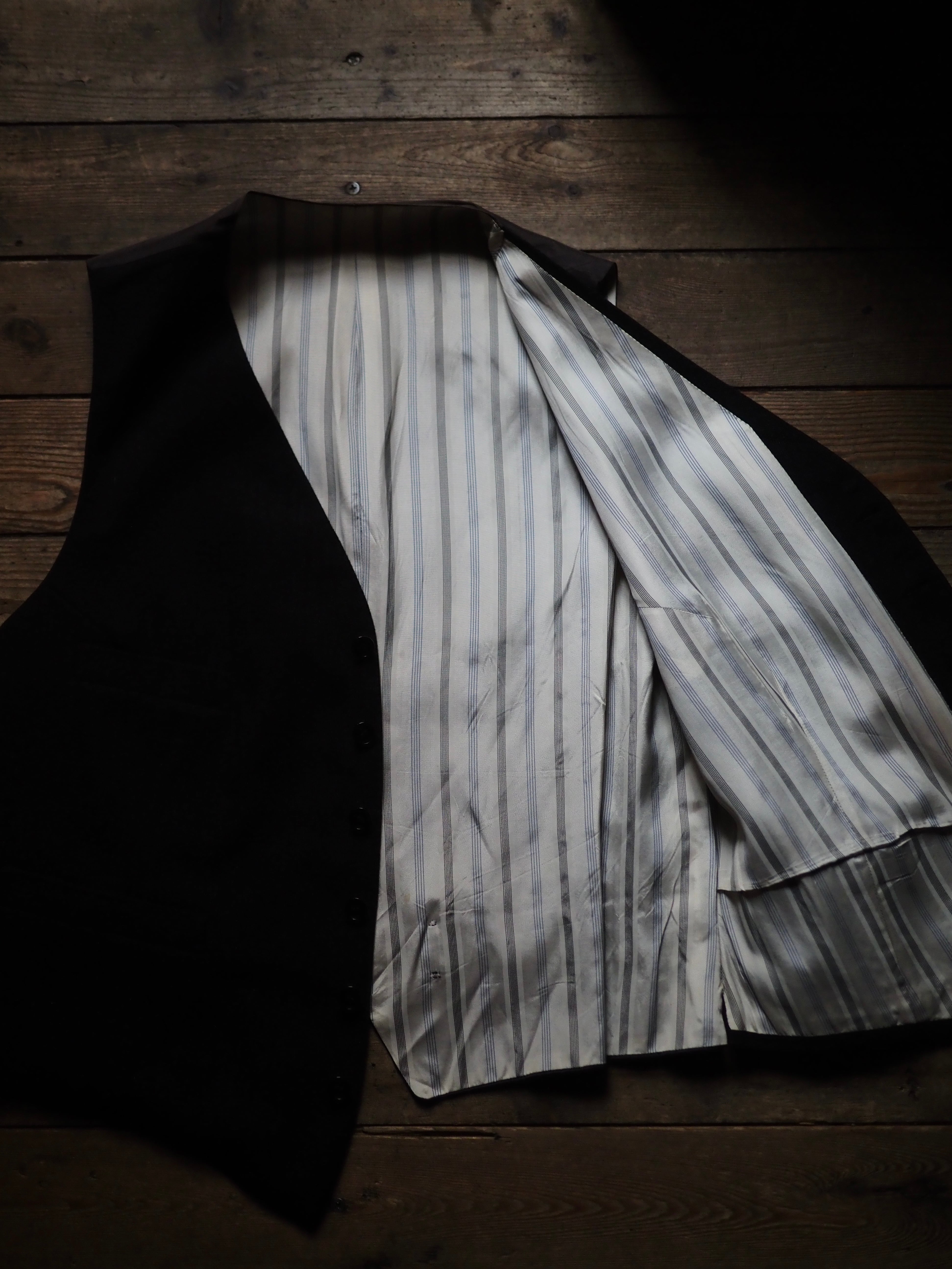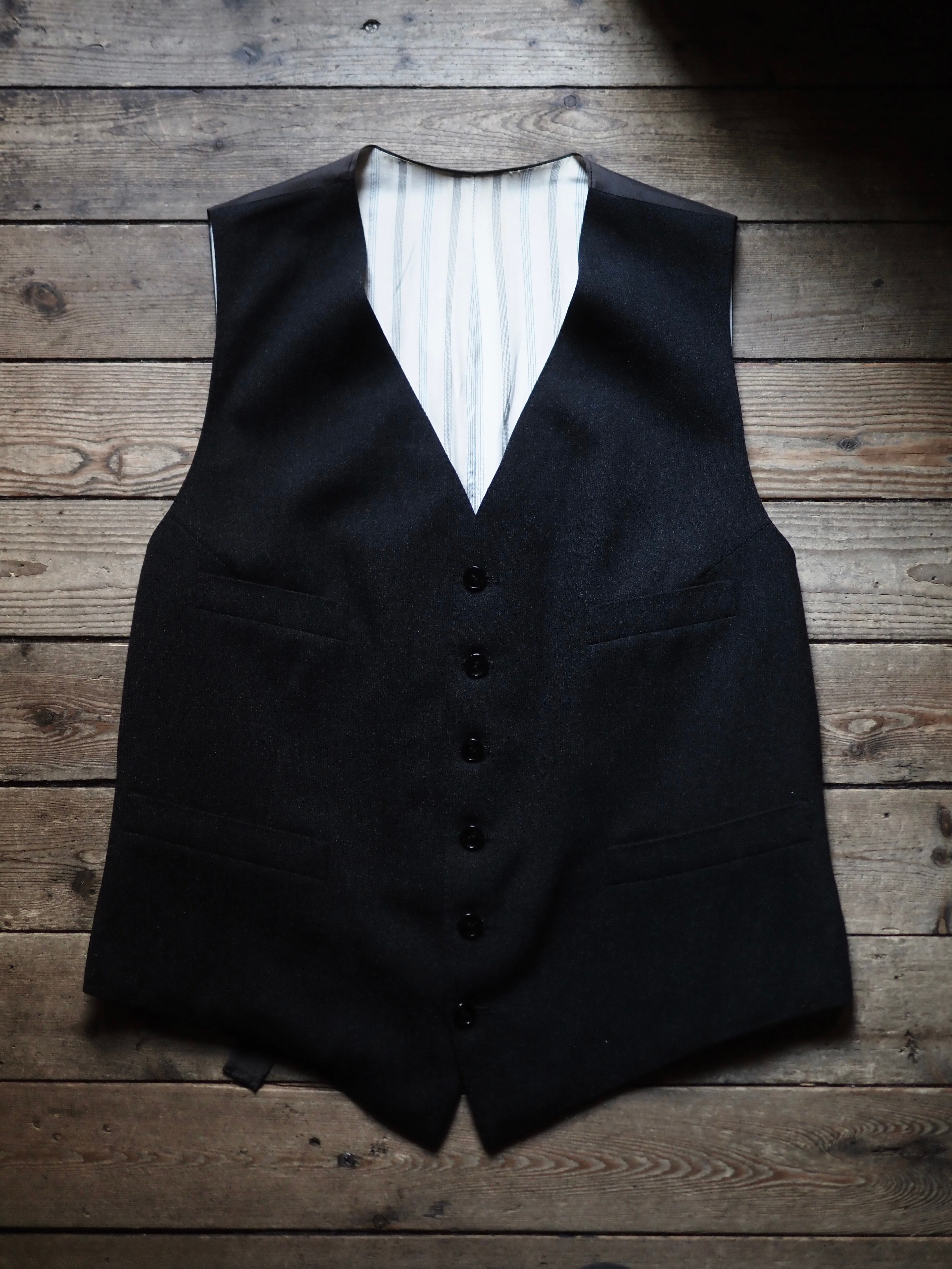 古着のウエストコートならではの程よい小慣れ感がありますので、意外と使いやすいのではないかと思います。