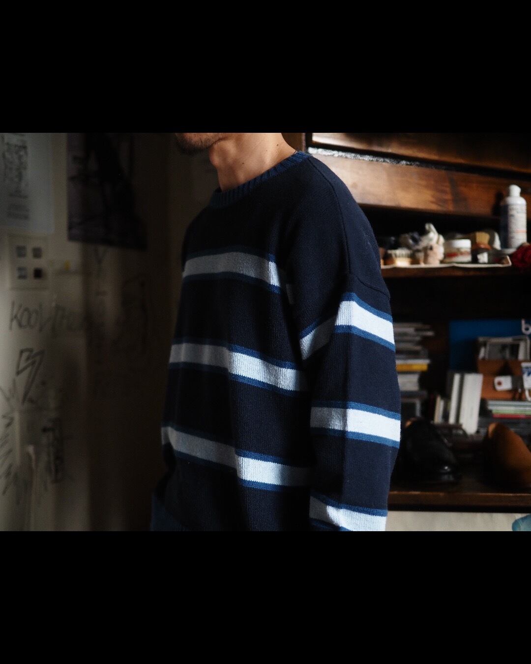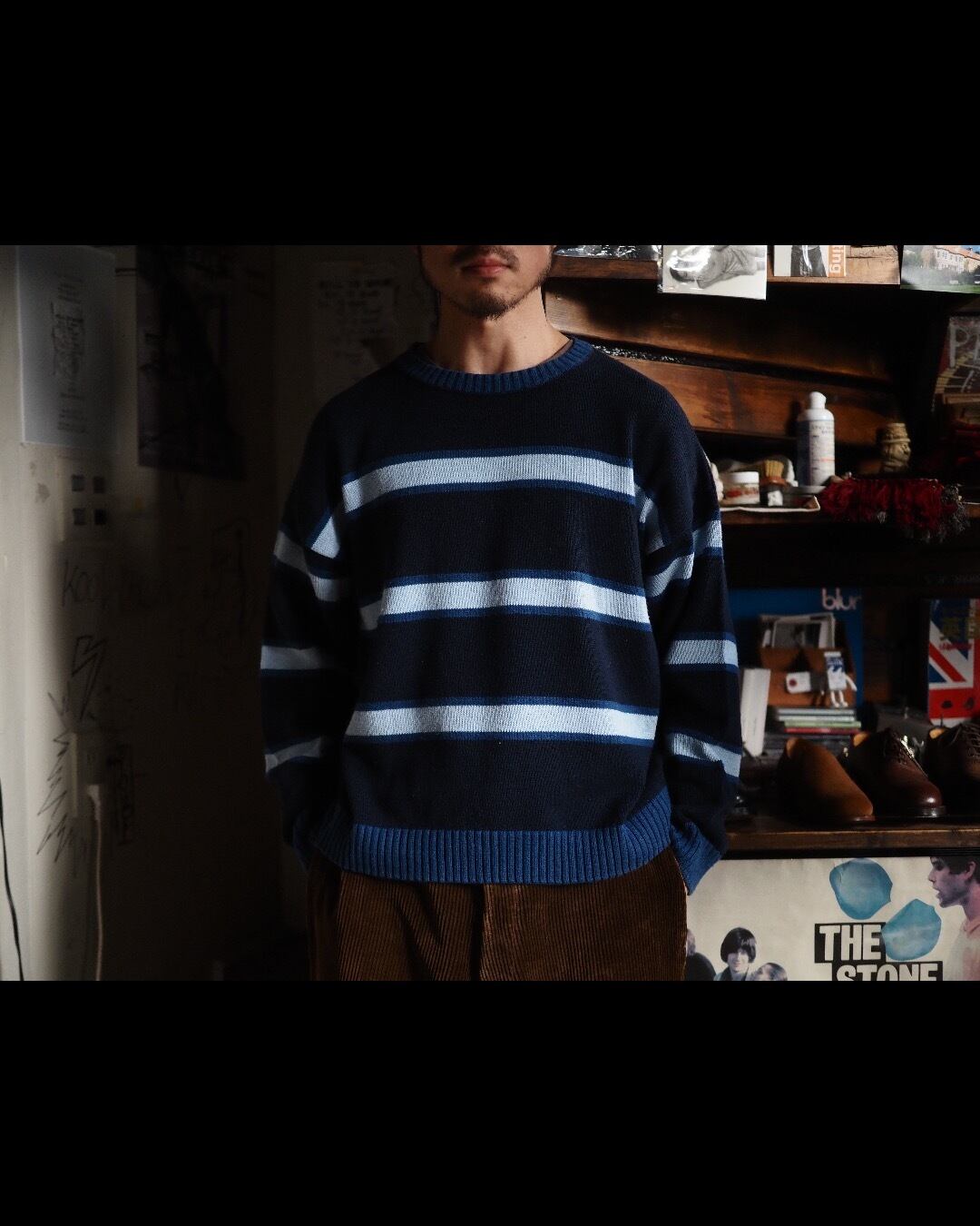 薄暗い地下で青白いギタリストが不穏なコードを掻き鳴らすような、そんなイメージがぴったりなセーターです。
