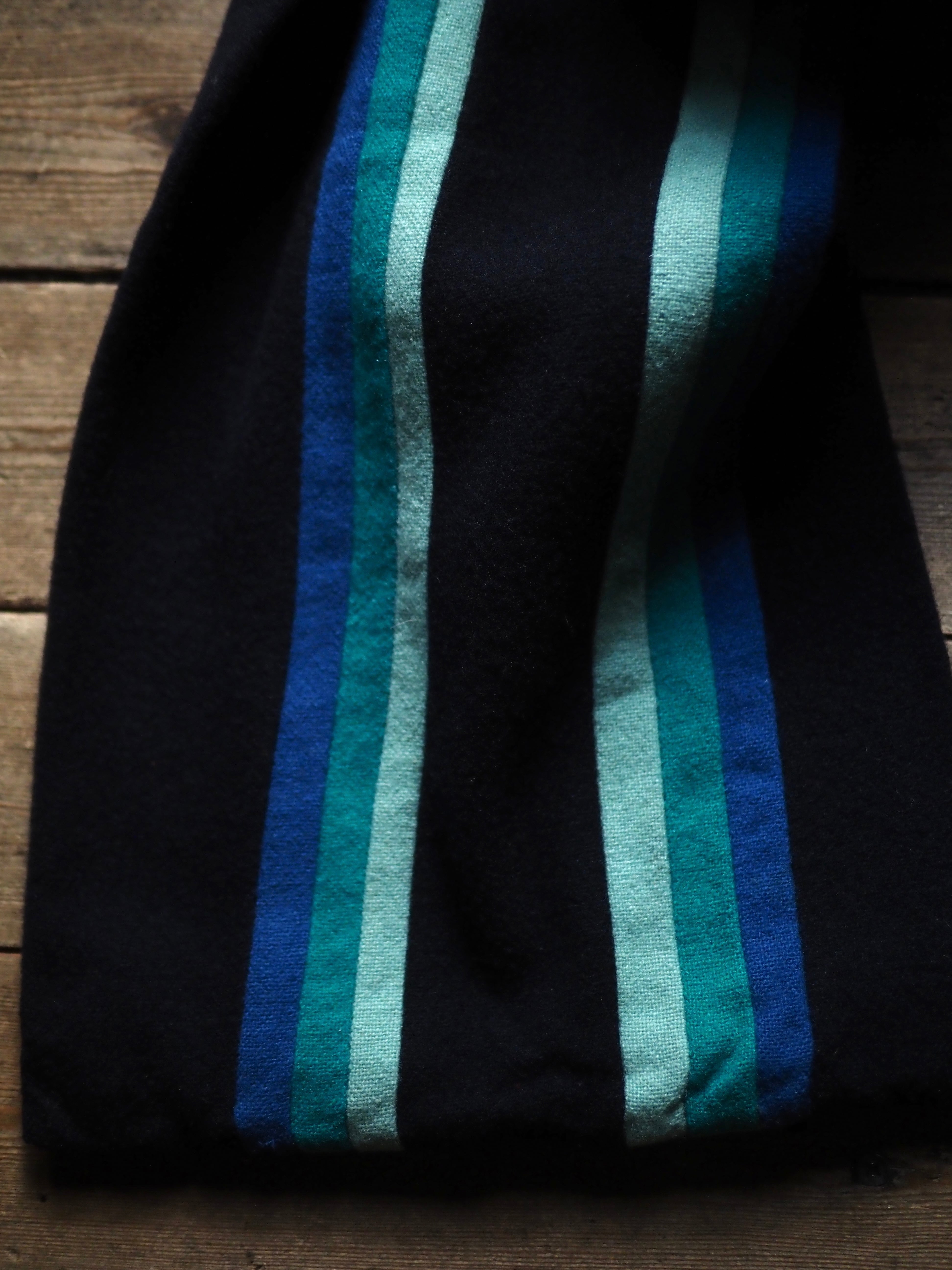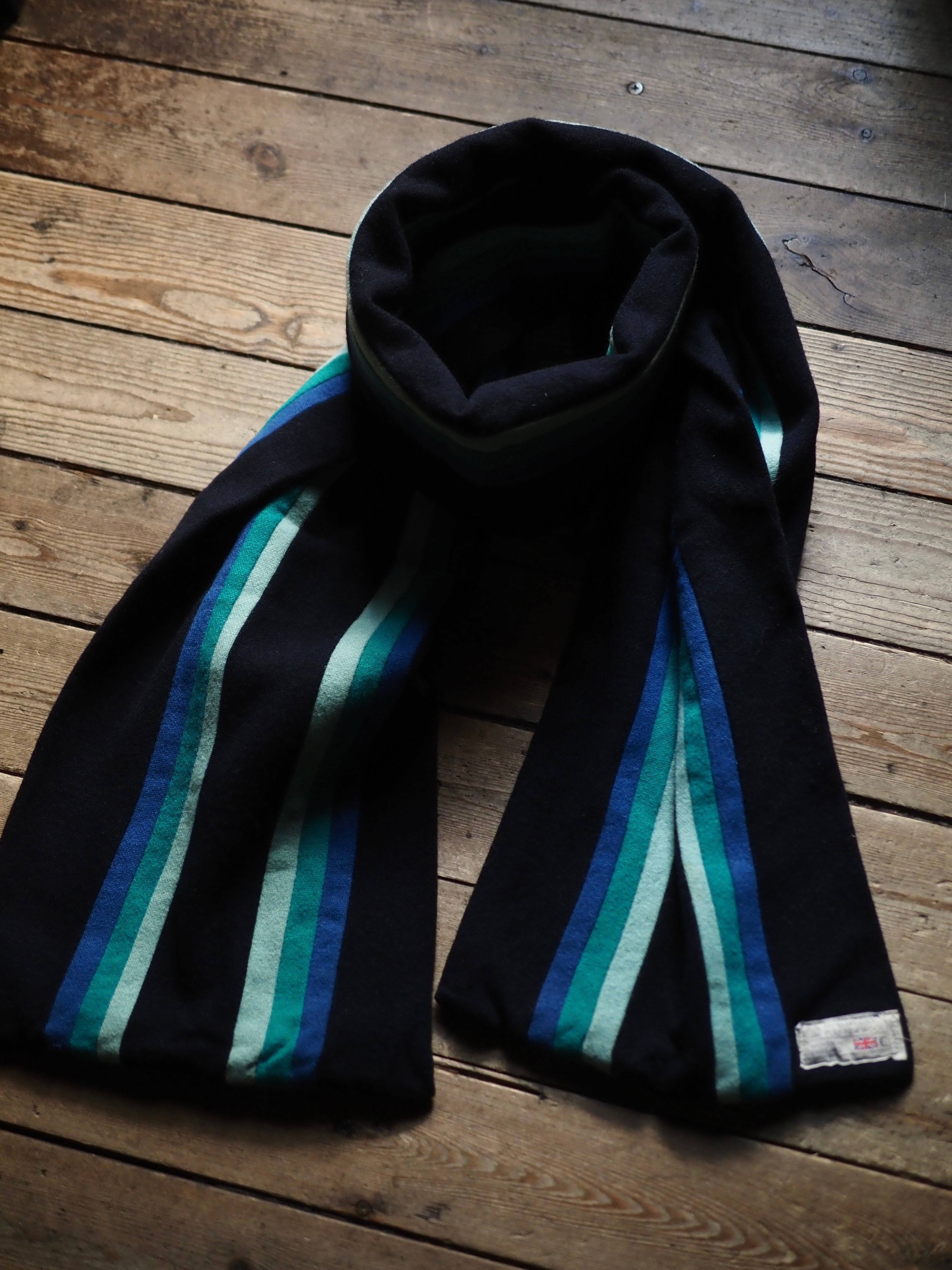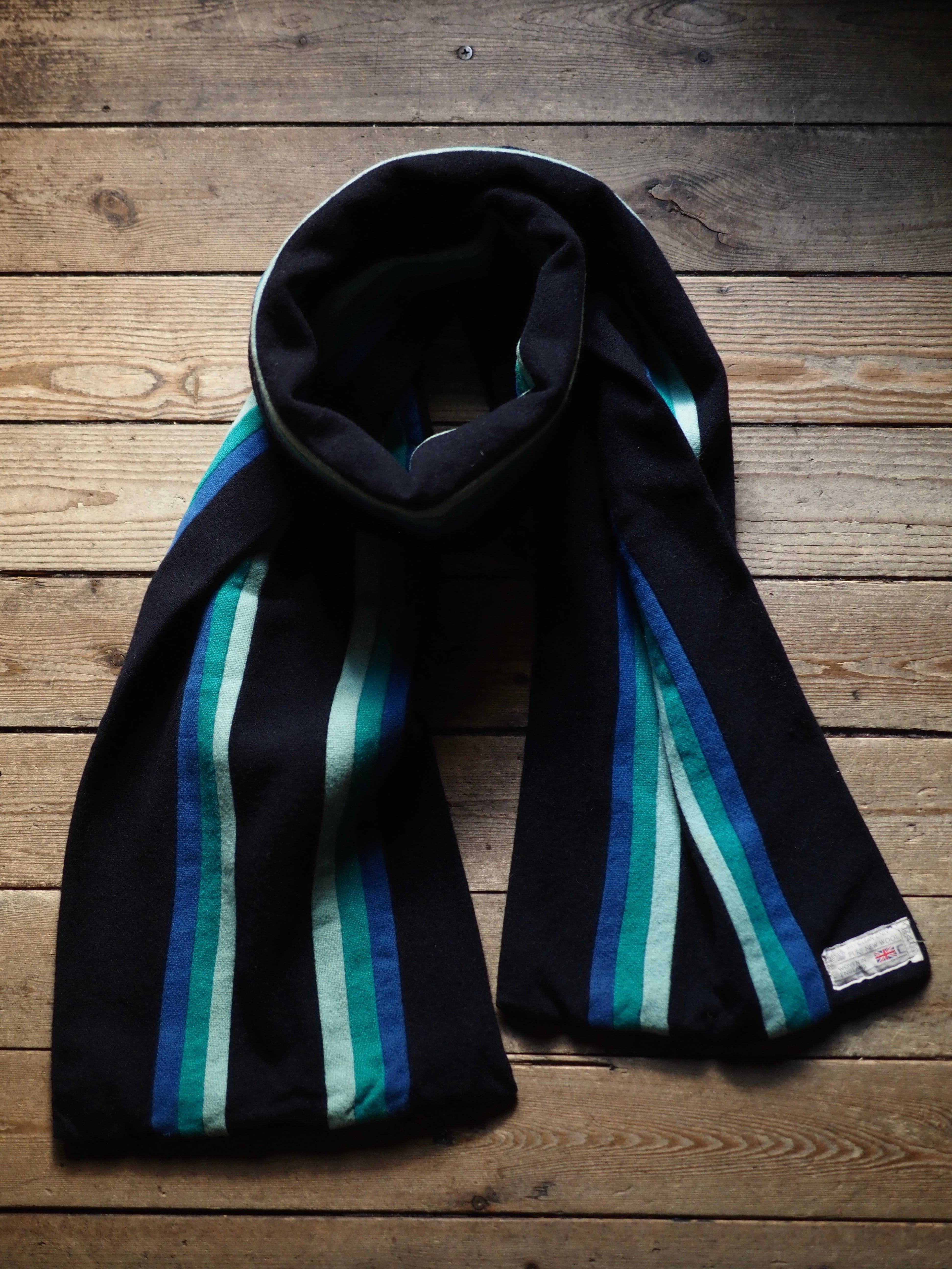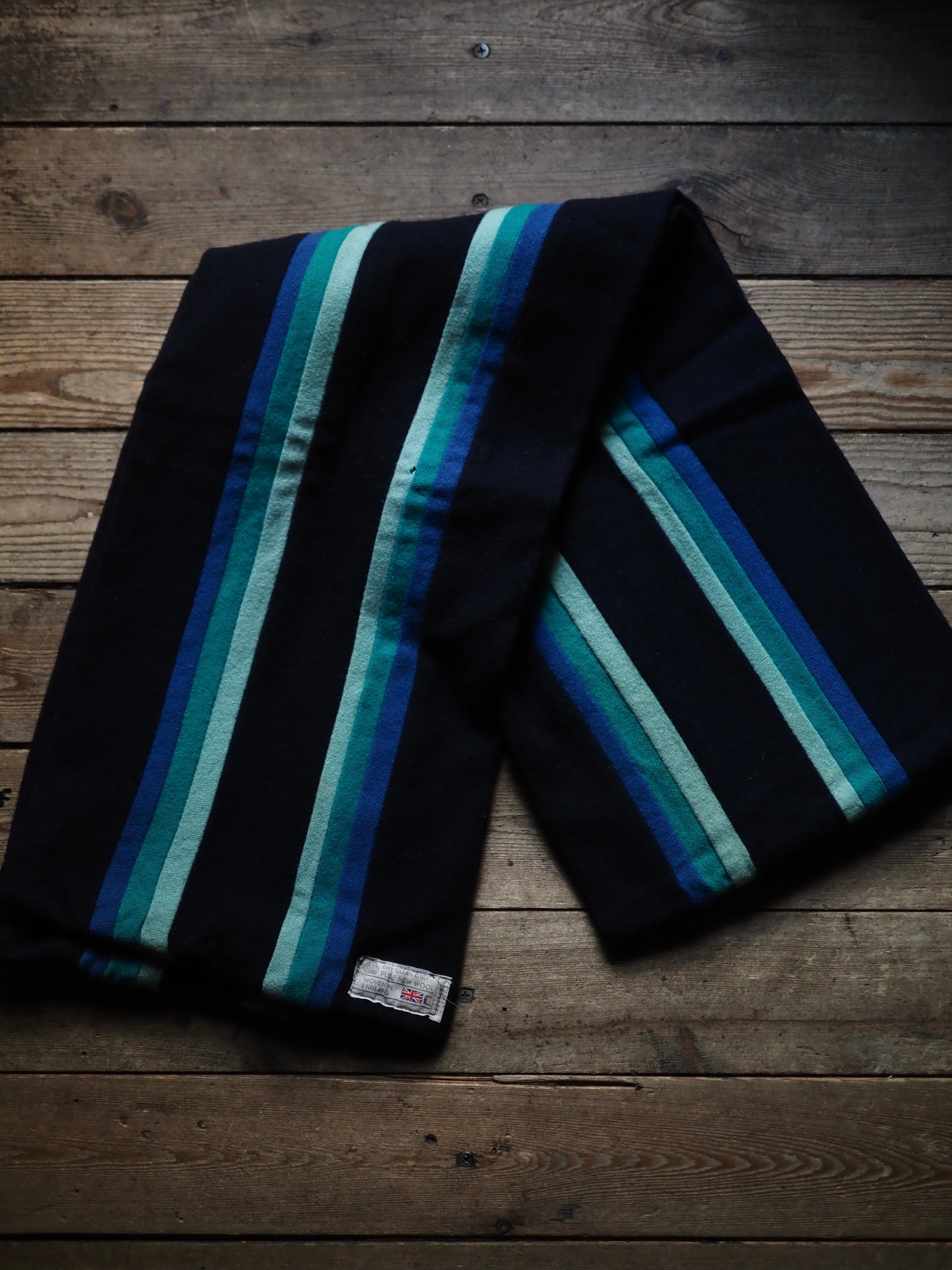 希少なイギリス製のビンテージスクールマフラーです。日本国内での流通量は多くない物かと思います。スクールジャケットと同様、英国ビンテージの中でも一際目を引く素晴らしいアイテム。