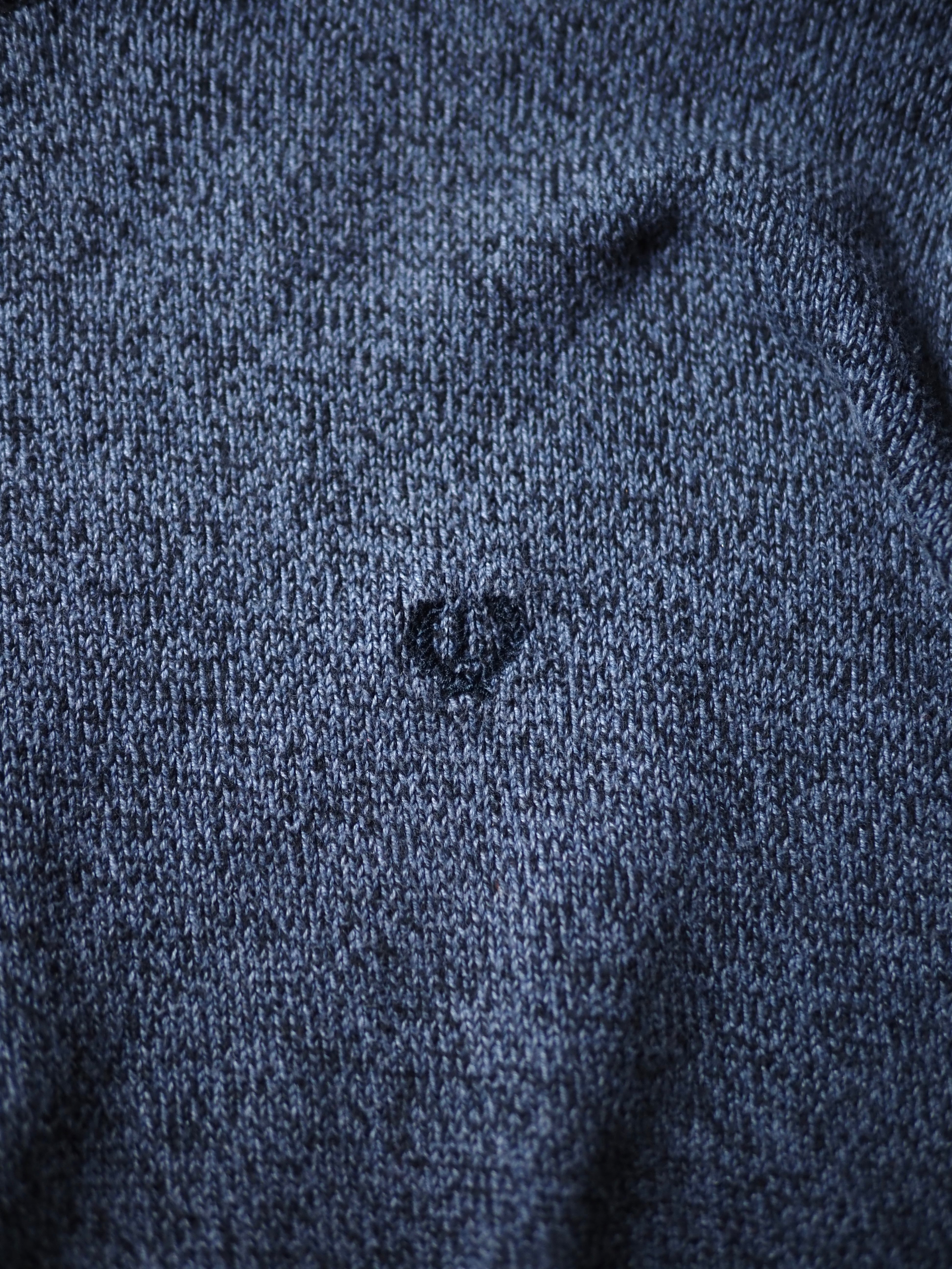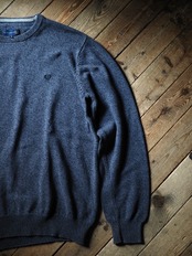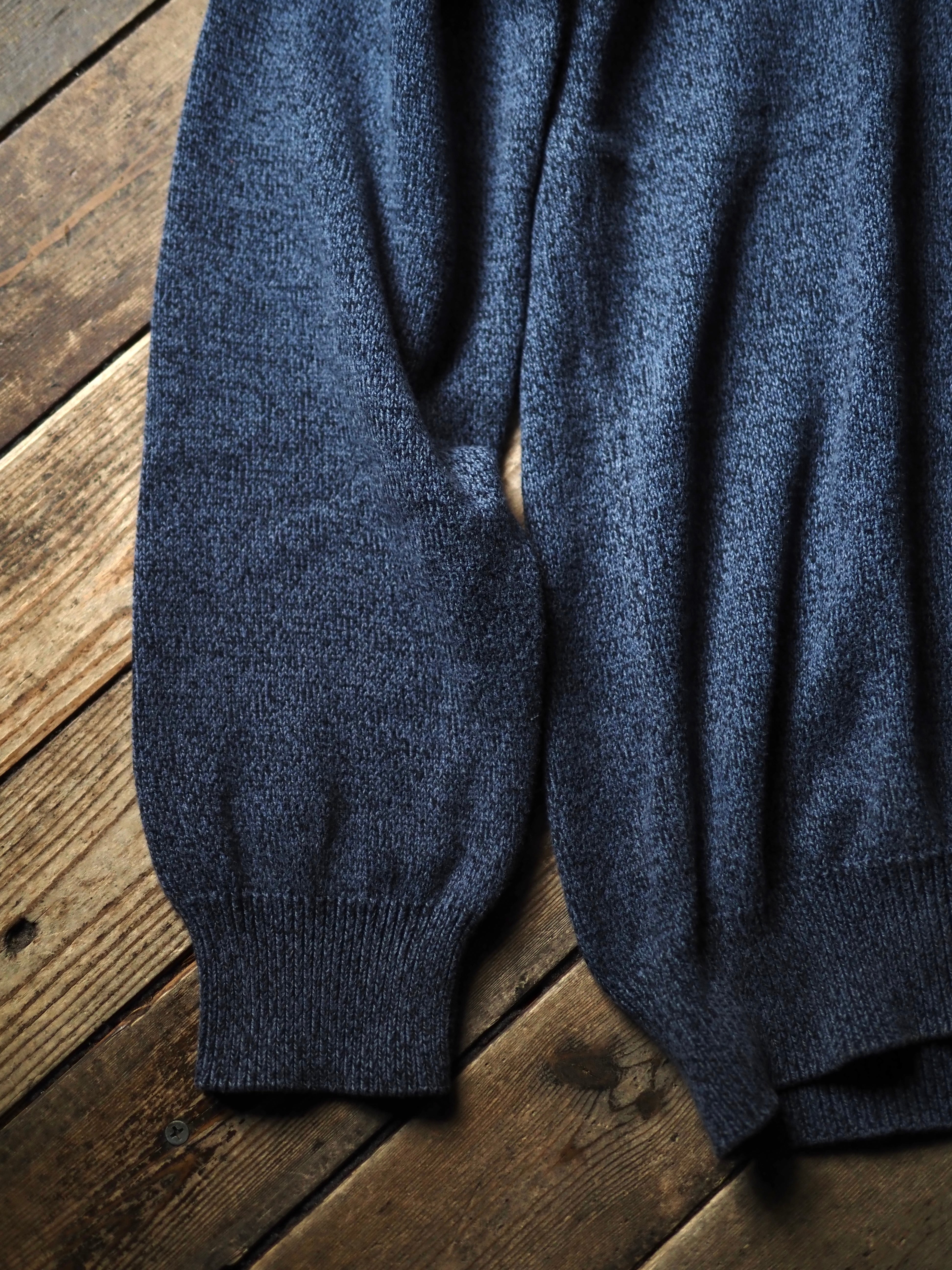 ネイビーカラーで、この手のメーカーですと定番のごま塩のような編み地模様。シンプルの範疇に収まりながらも押し付けすぎない程よい主張。このさじ加減もまた英国服感があります。
