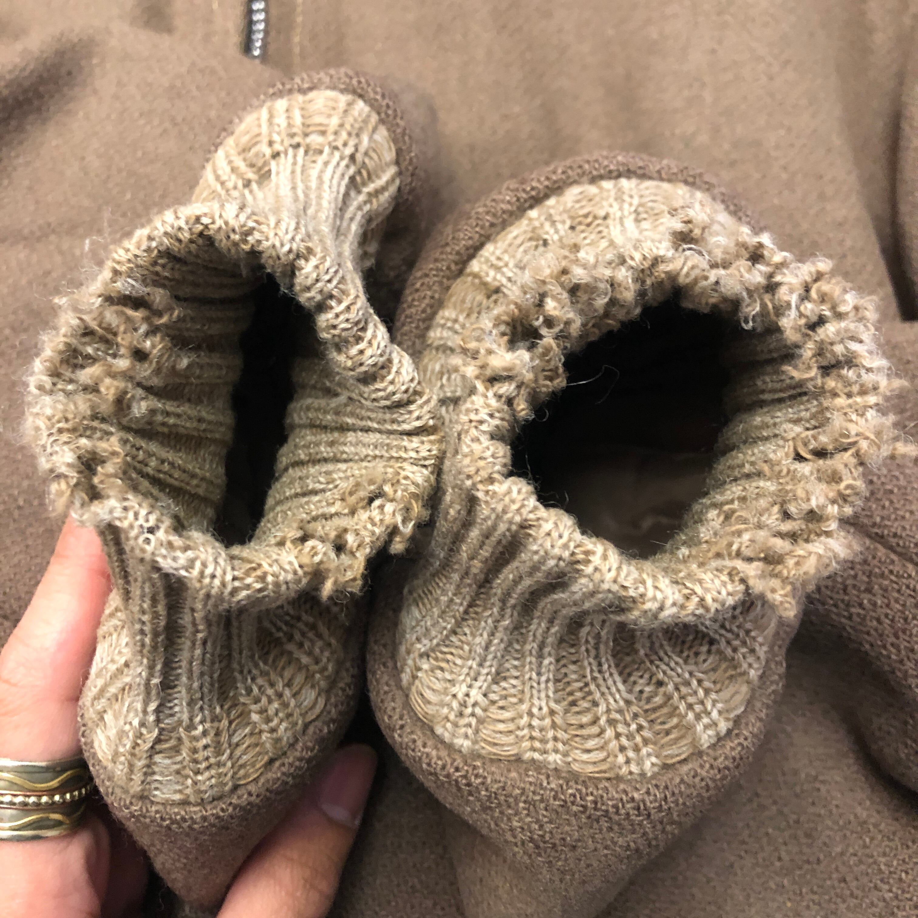 両袖のリブの破れ。