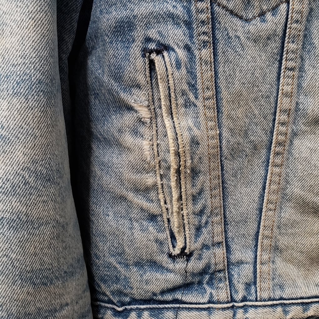デニム地に独特のアタリやスレ使用感あり、