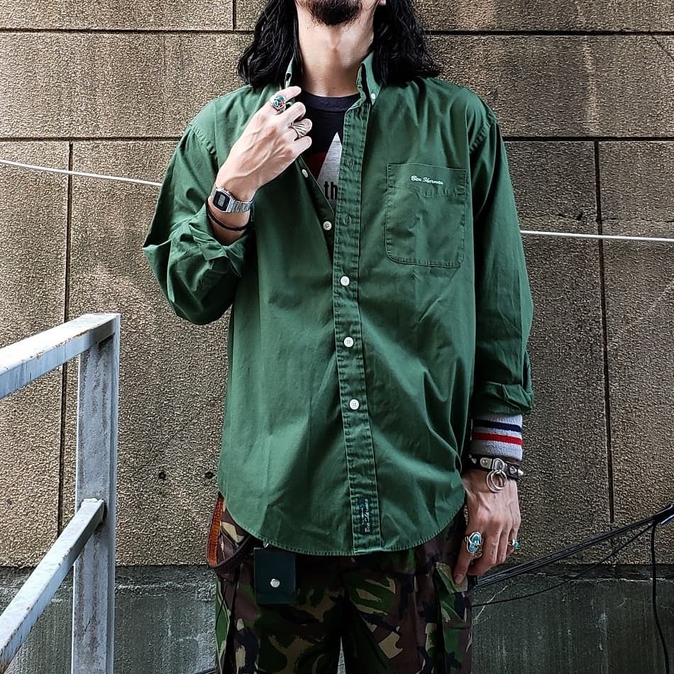 Olive Green! 80s~ UK Vintage "Ben Sherman" L/S Shirt ベンシャーマン