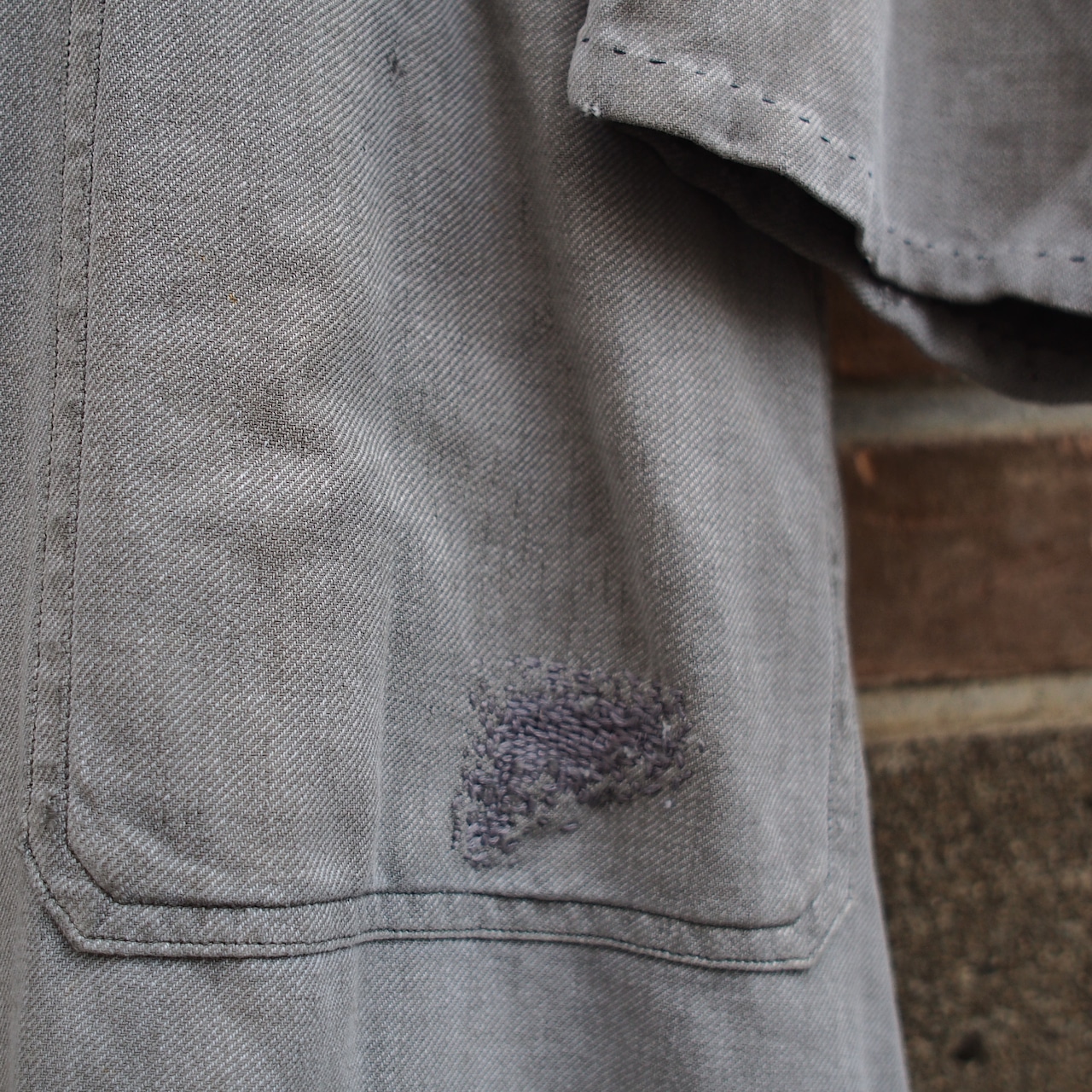 広い範囲の刺し子のリペアが数カ所あり、そちらもフレンチビンテージらしい雰囲気です。