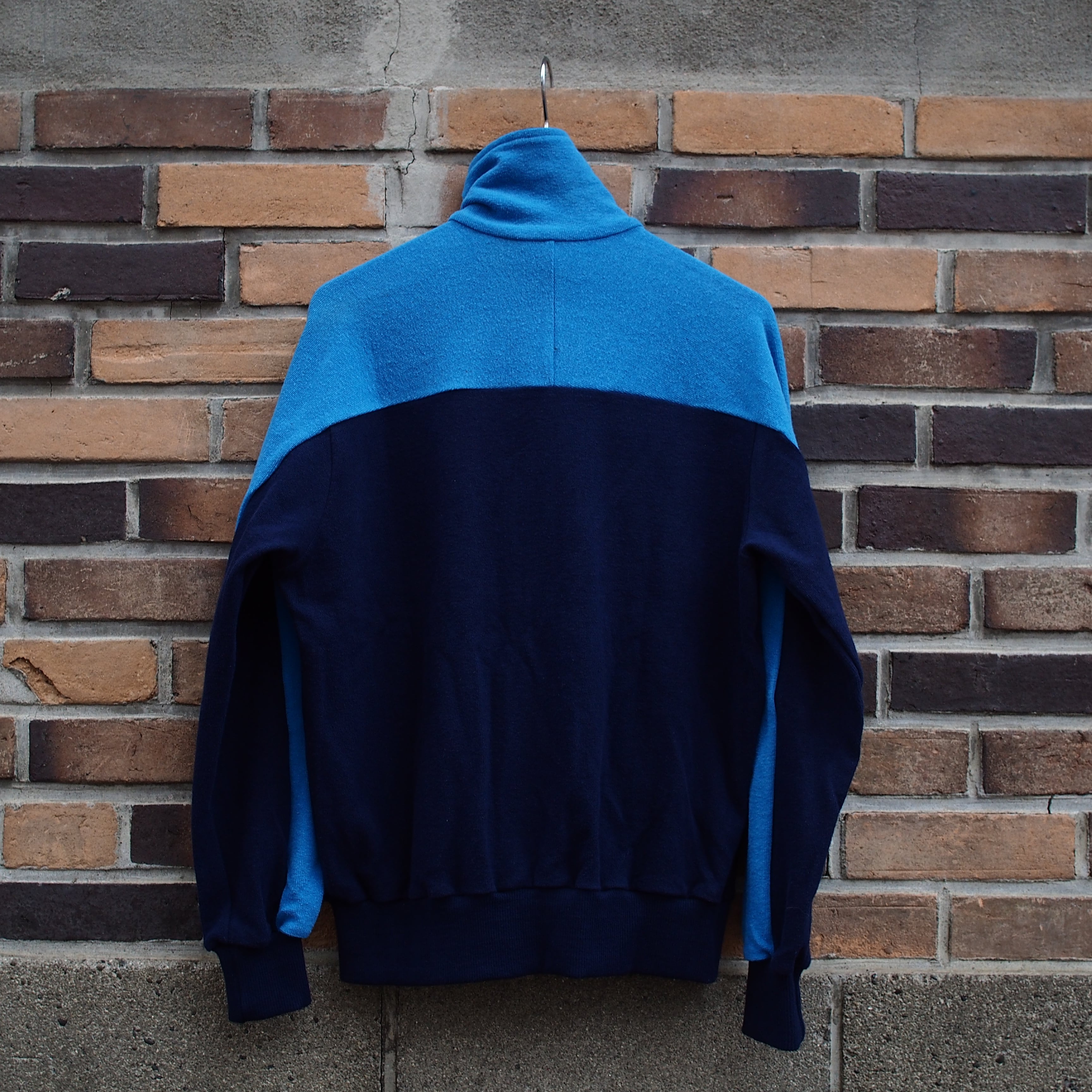 サックスブルー、ネイビー、ホワイトの定番カラーリング。シンプルなカラーリングですが、発色が古めかしく、ビンテージジャージらしい雰囲気です。