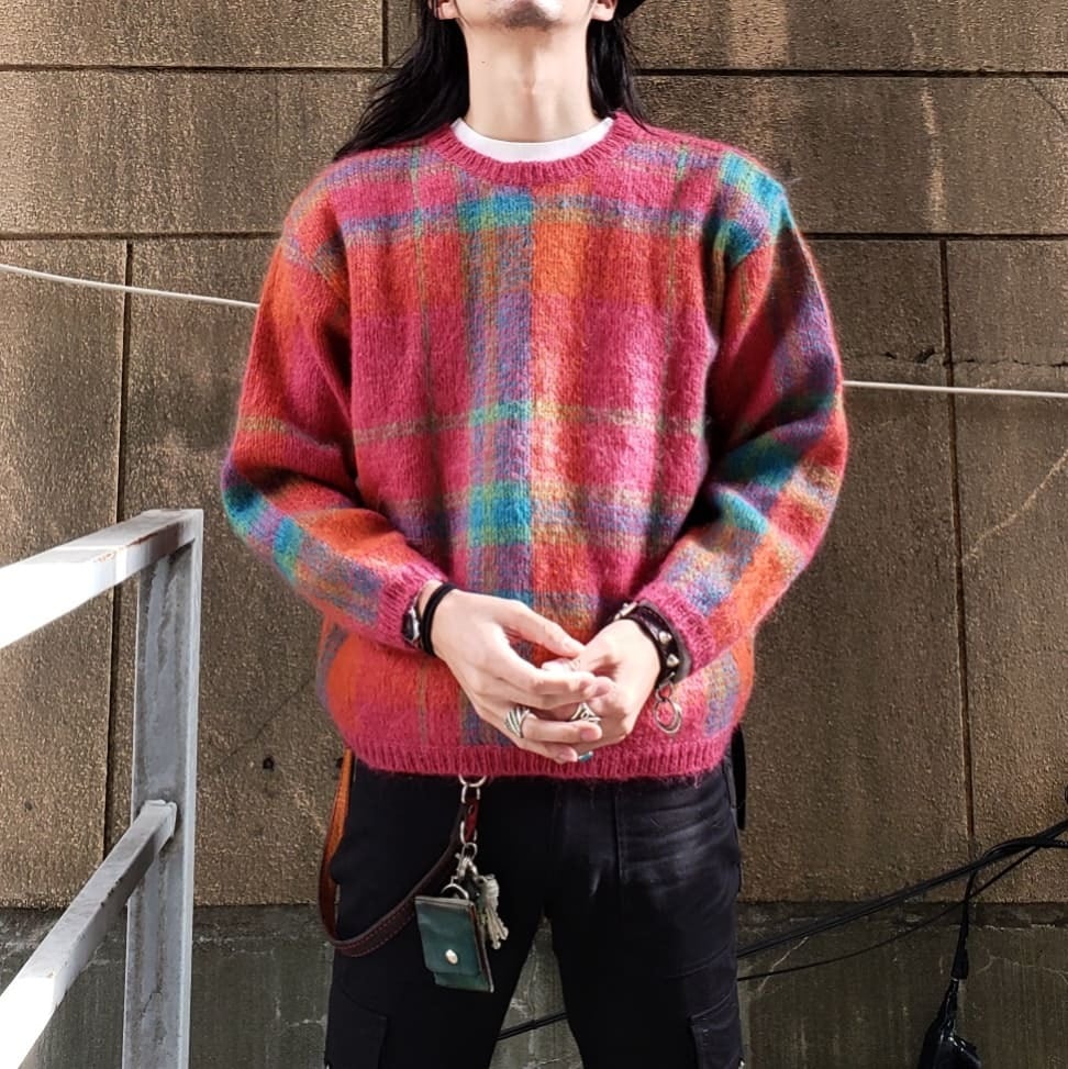 Very Punk! 90s "Gallagher" Check Mohair Knit モヘアニット パンク