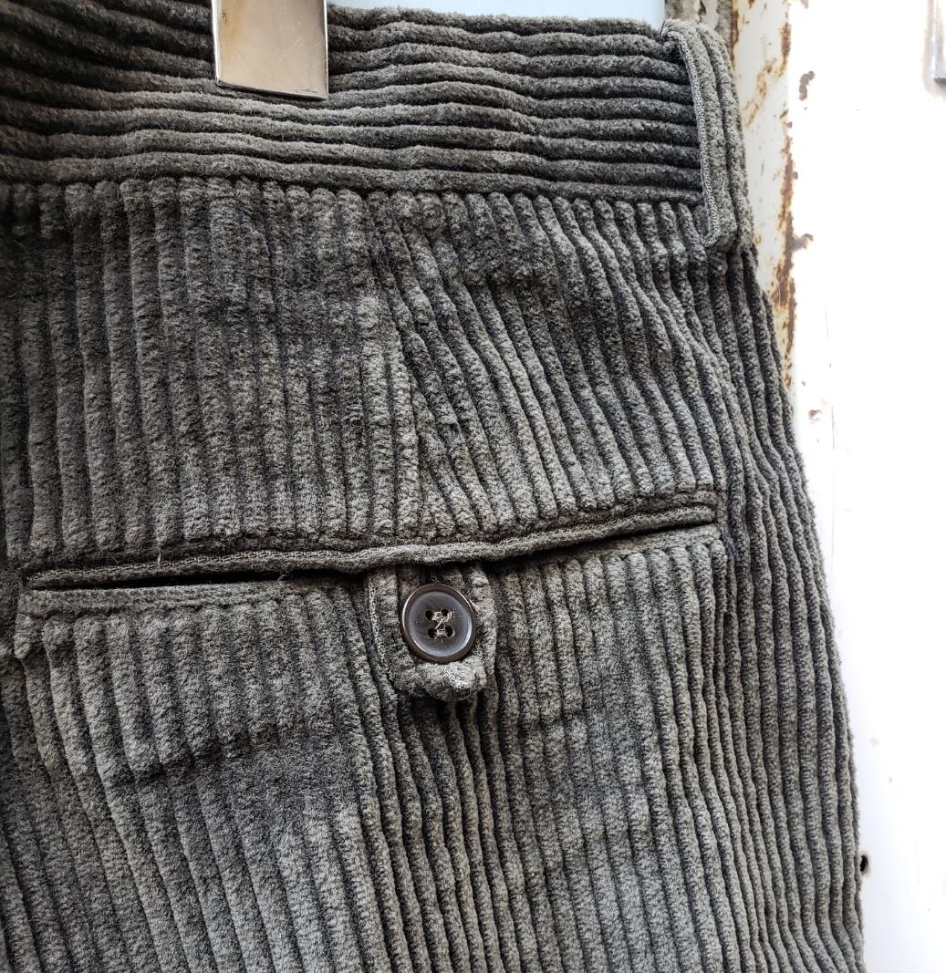ジョルジオ・アルマーニの"ペグトップ"太畝コーデュロイパンツです。