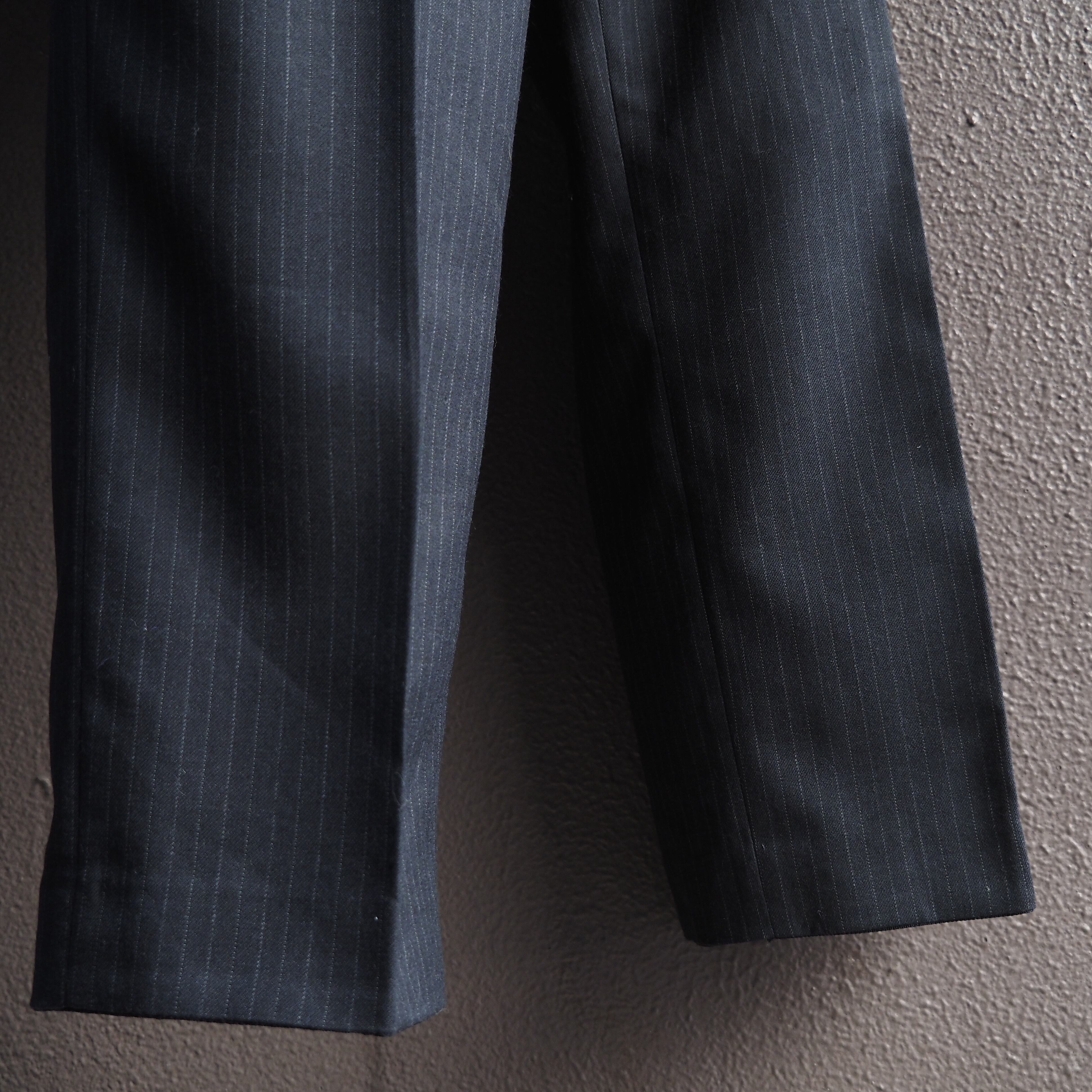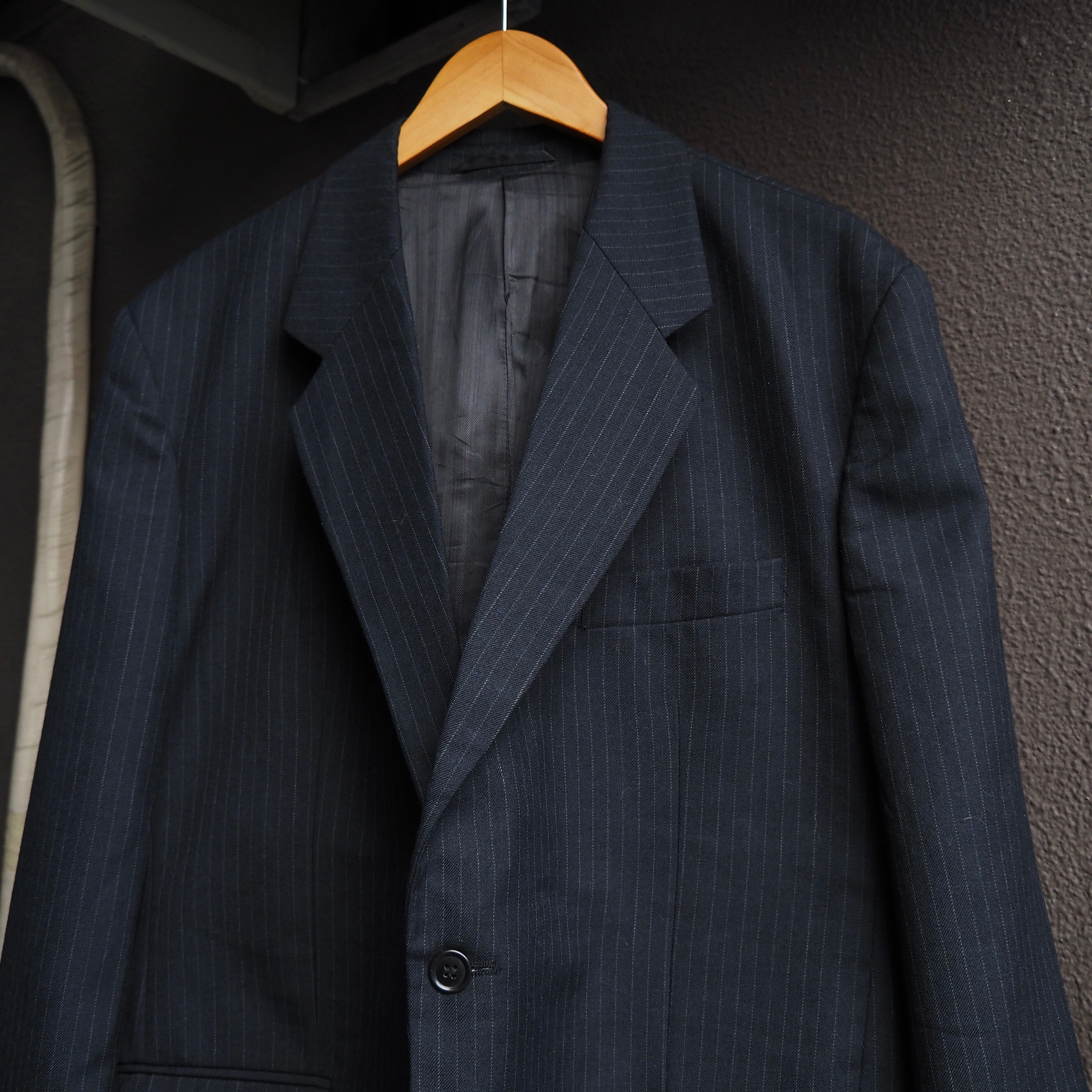チャコールグレーベースにピンストライプが乗るクラシックなスーツですが、しっかりとビンテージらしい雰囲気がありますので、古着らしい自由なスタイルにも落とし込みやすい1着です。