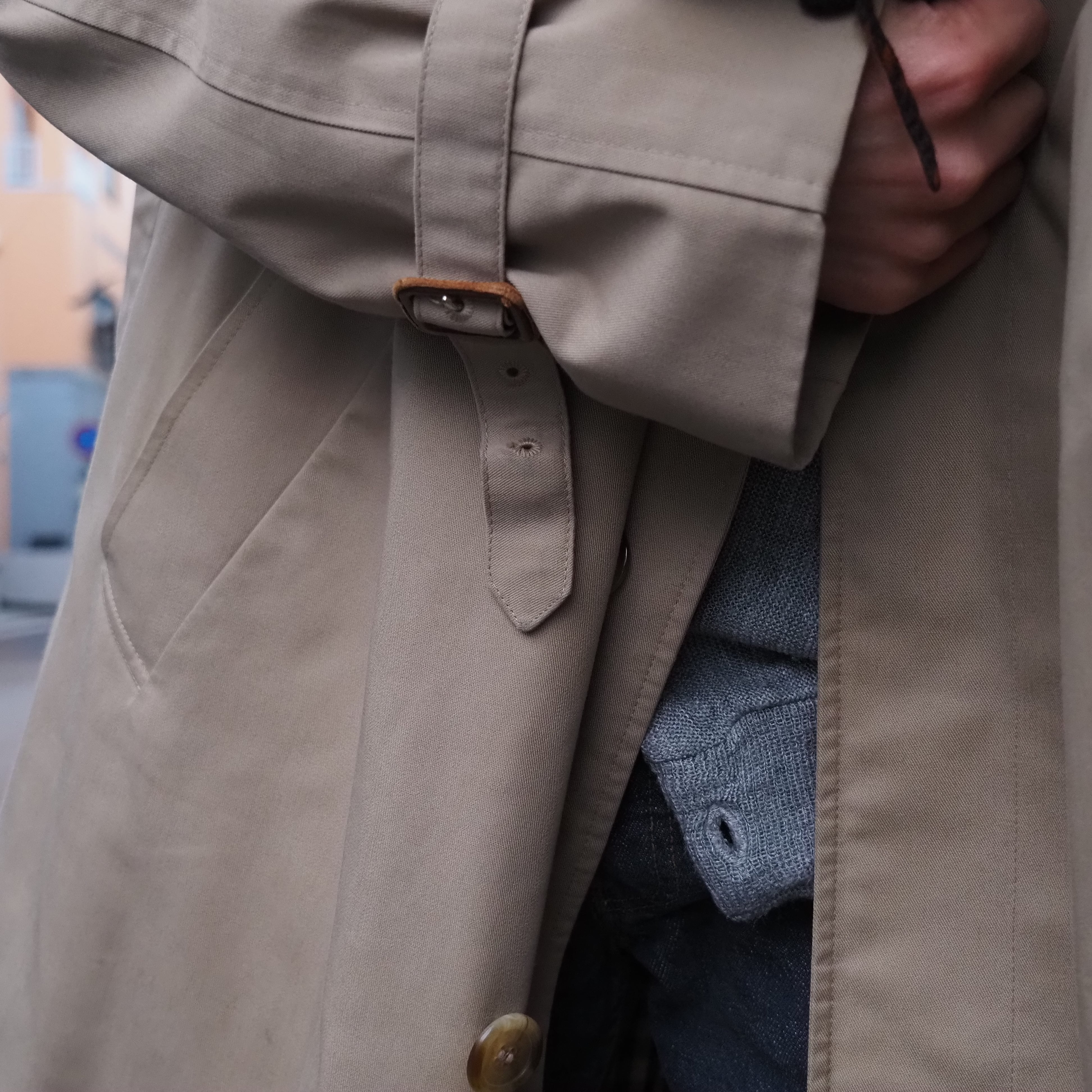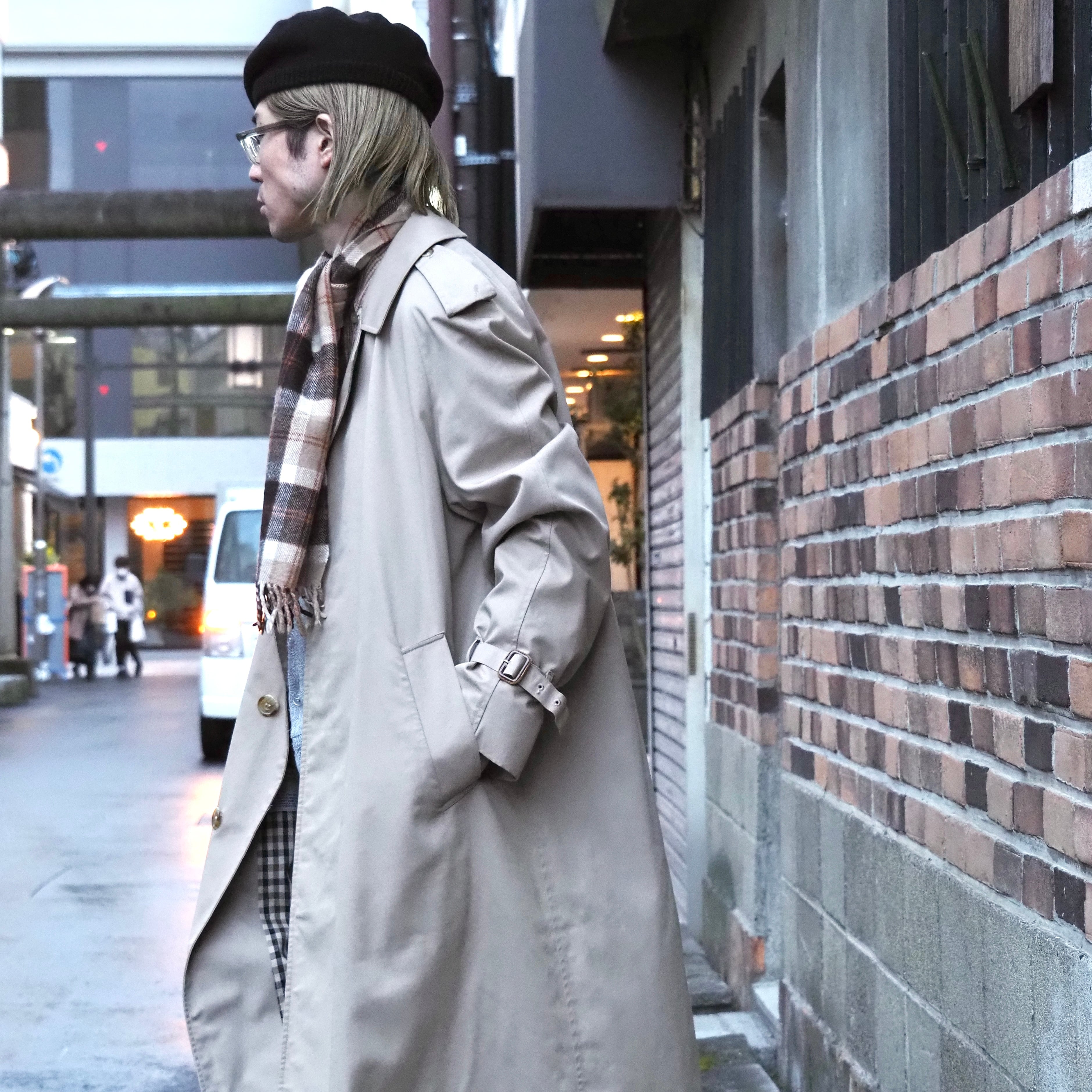 ウエストベルトは欠損しておりますが、肩のエポレットや袖のベルトなど、トレンチコートらしいディテールに惹かれます。
