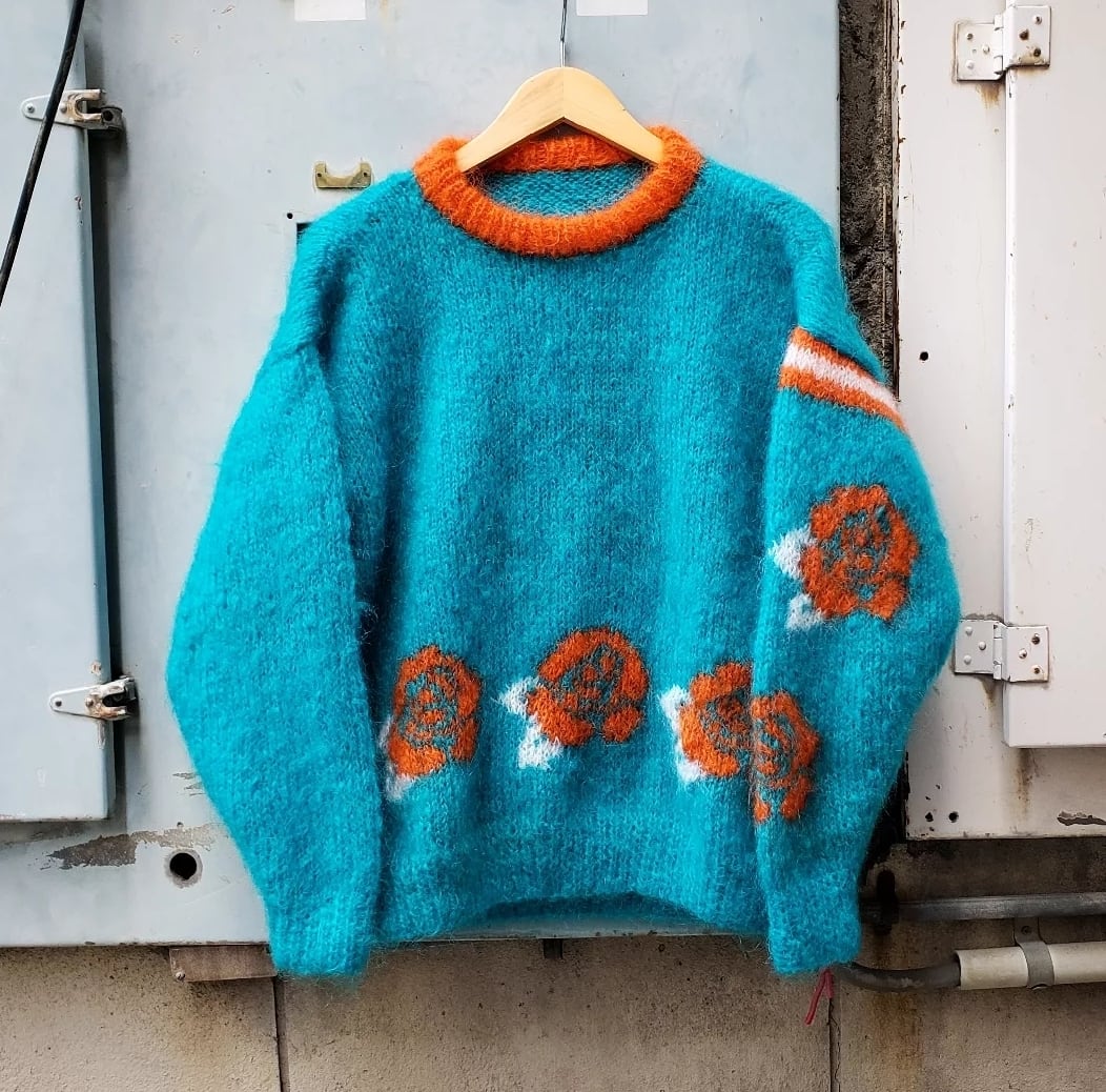 ターコイズブルー! 80s~ UK Vintage "Punk" Mohair Knit モヘアニット パンク