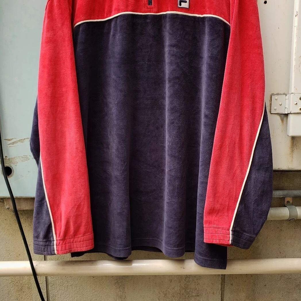 Football Casuals! 90s~ "FILA" Velor Pullover Training Jacket フィラ ベロア フットボールカジュアルズ マッドチェスター ブリットポップ