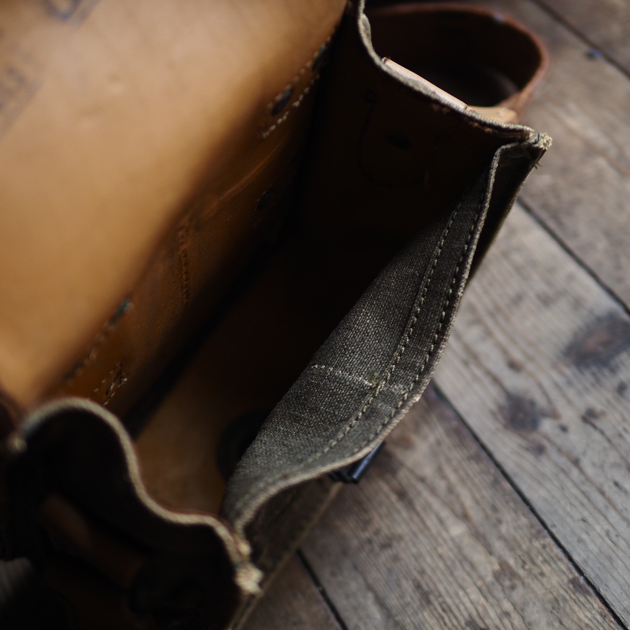 バッグ内部までレザーで裏張りが施されている手の込んだ作りは、今日ではまず見ることがないであろう素晴らしい作りです。