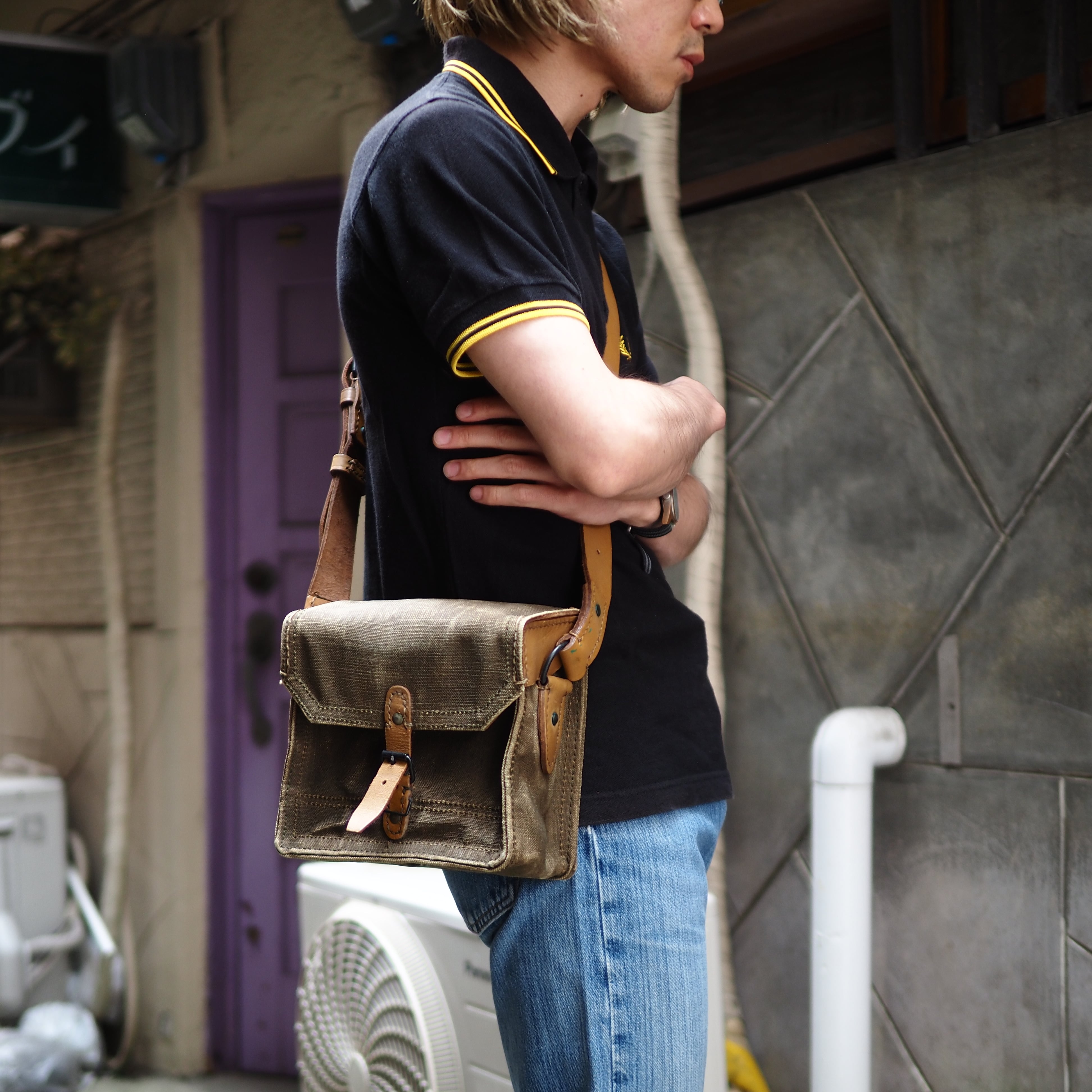 1950’s-60’s French Army Heavy Canvas × Leather Shoulder Bag フランス軍 ビンテージ キャンバス レザー ショルダーバッグ