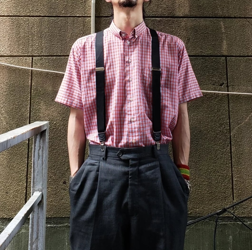 ブレイシーズにスラックスを用いた男くさいパンクスタイルもオススメです。