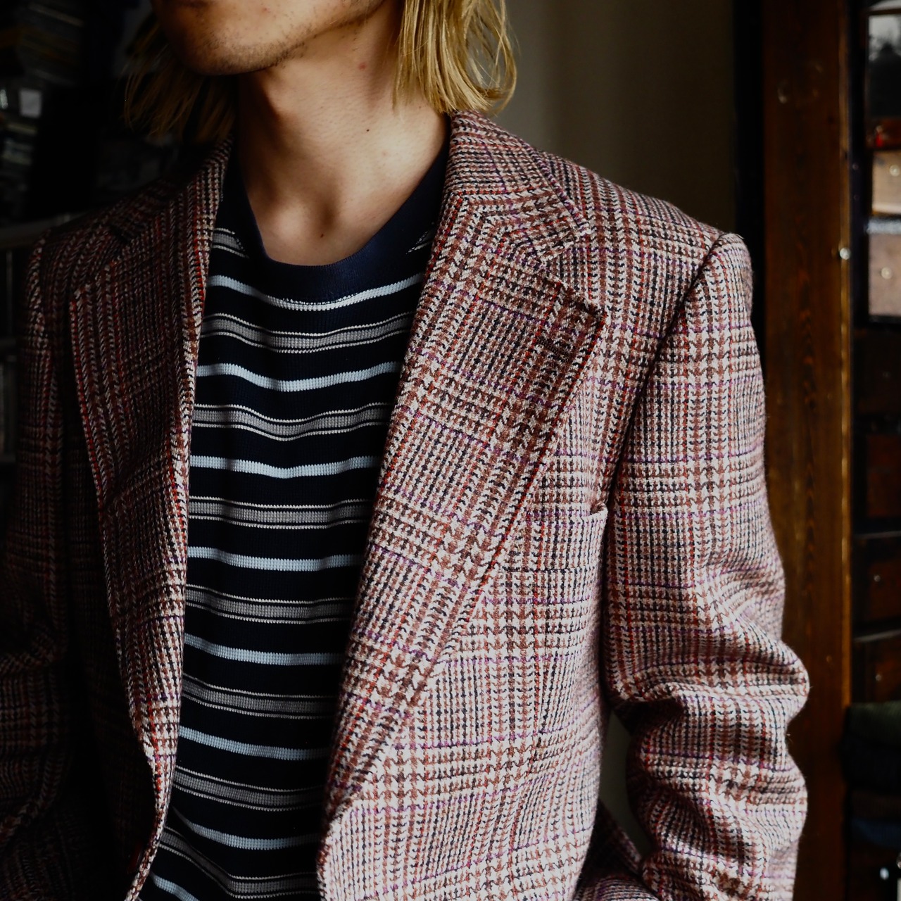 Blurのグレアム・コクソンがキャリアを通して着用しているテーラードジャケットを彷彿とさせる1着。