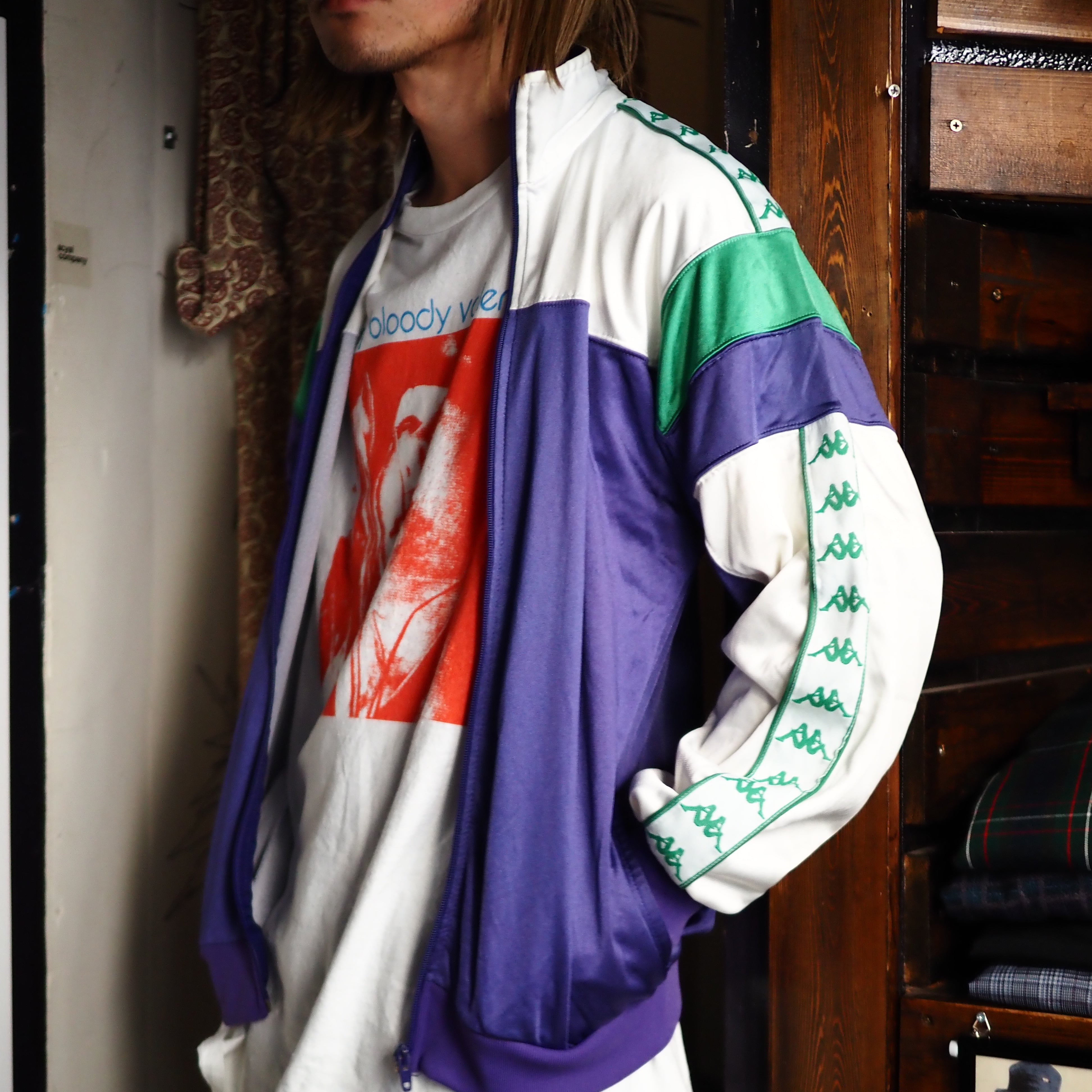 イタリア製の古いKAPPAは市場の数も少なく、こちらのようなジャージ生地の物はコンスタントな入荷が難しいアイテムです。