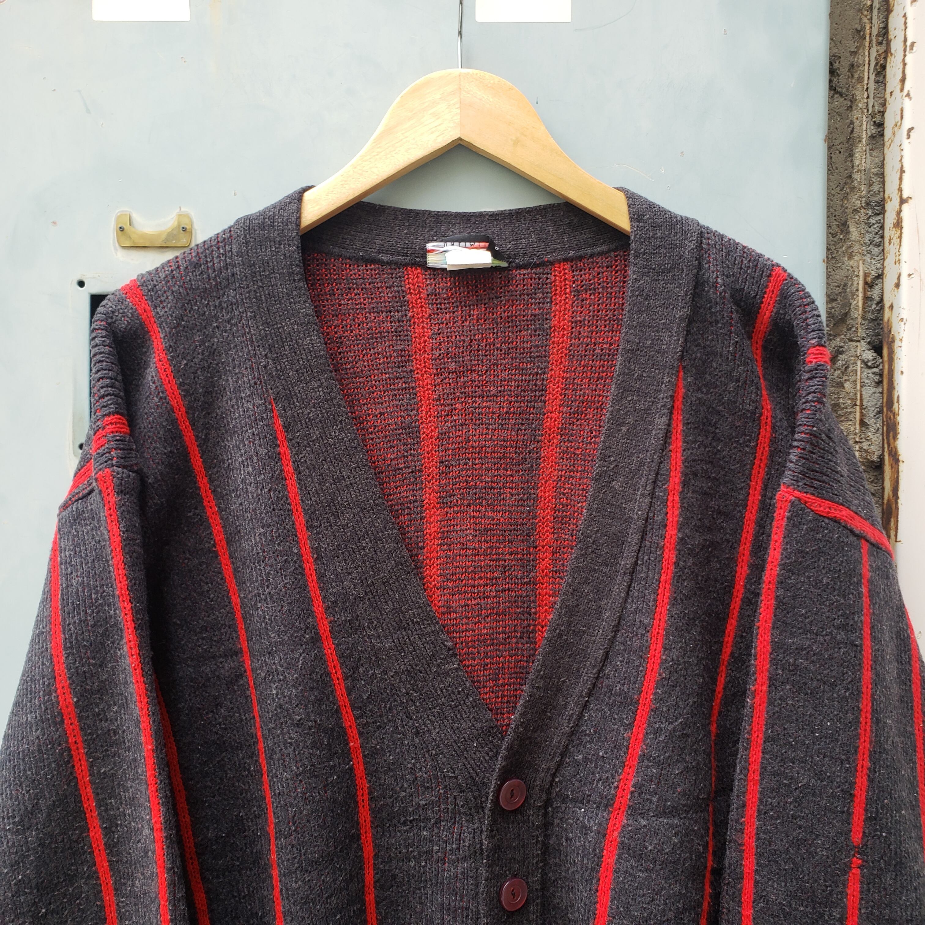 80s不良的前衛感! 80s~ Vintage Acrylic Cardigan ラロッカ ネオロカ パンク 2トーン
