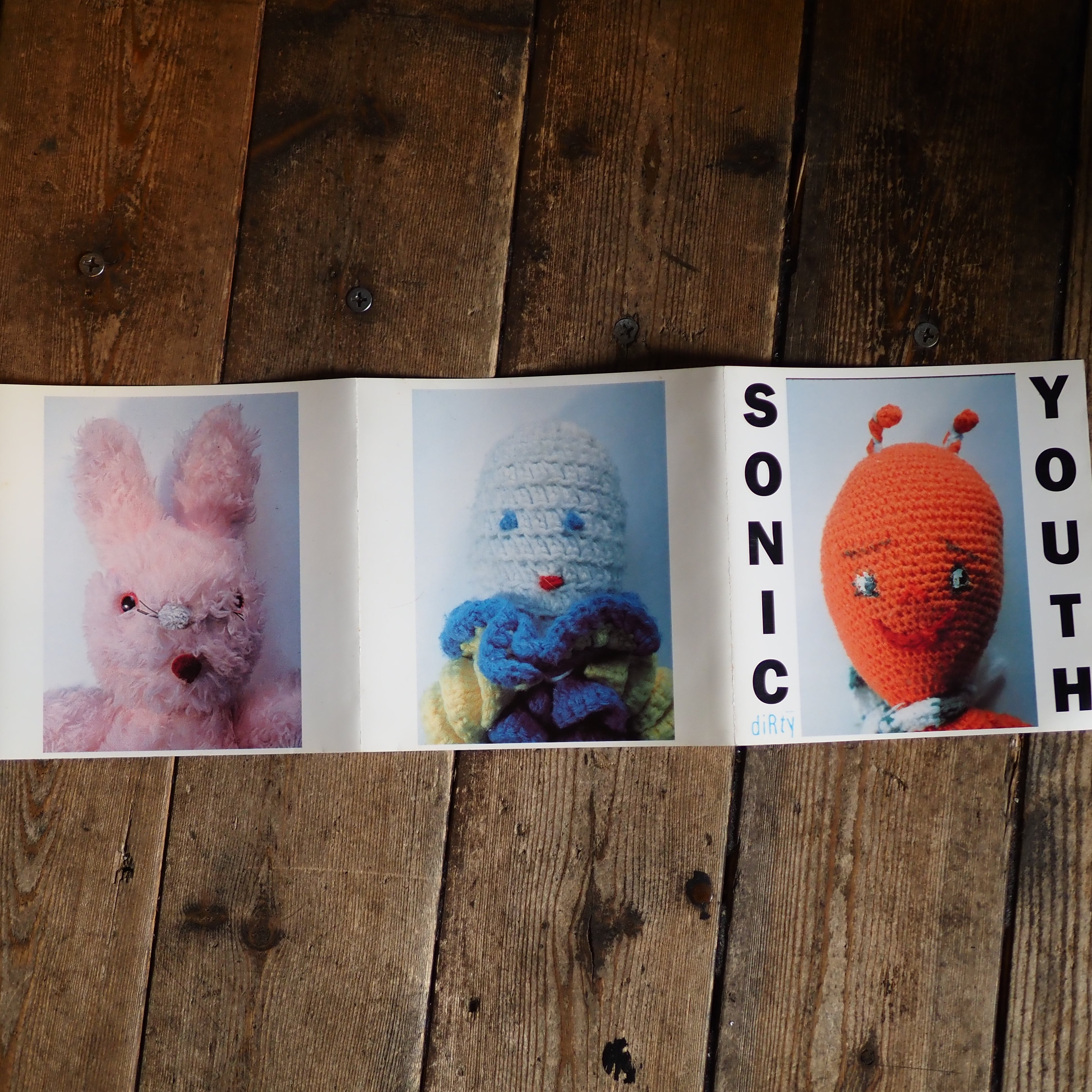 1992年リリース”Dirty”のカバーアートでお馴染み、現代美術家マイク・ケリーの使い古された人形を用いたデザイン。
