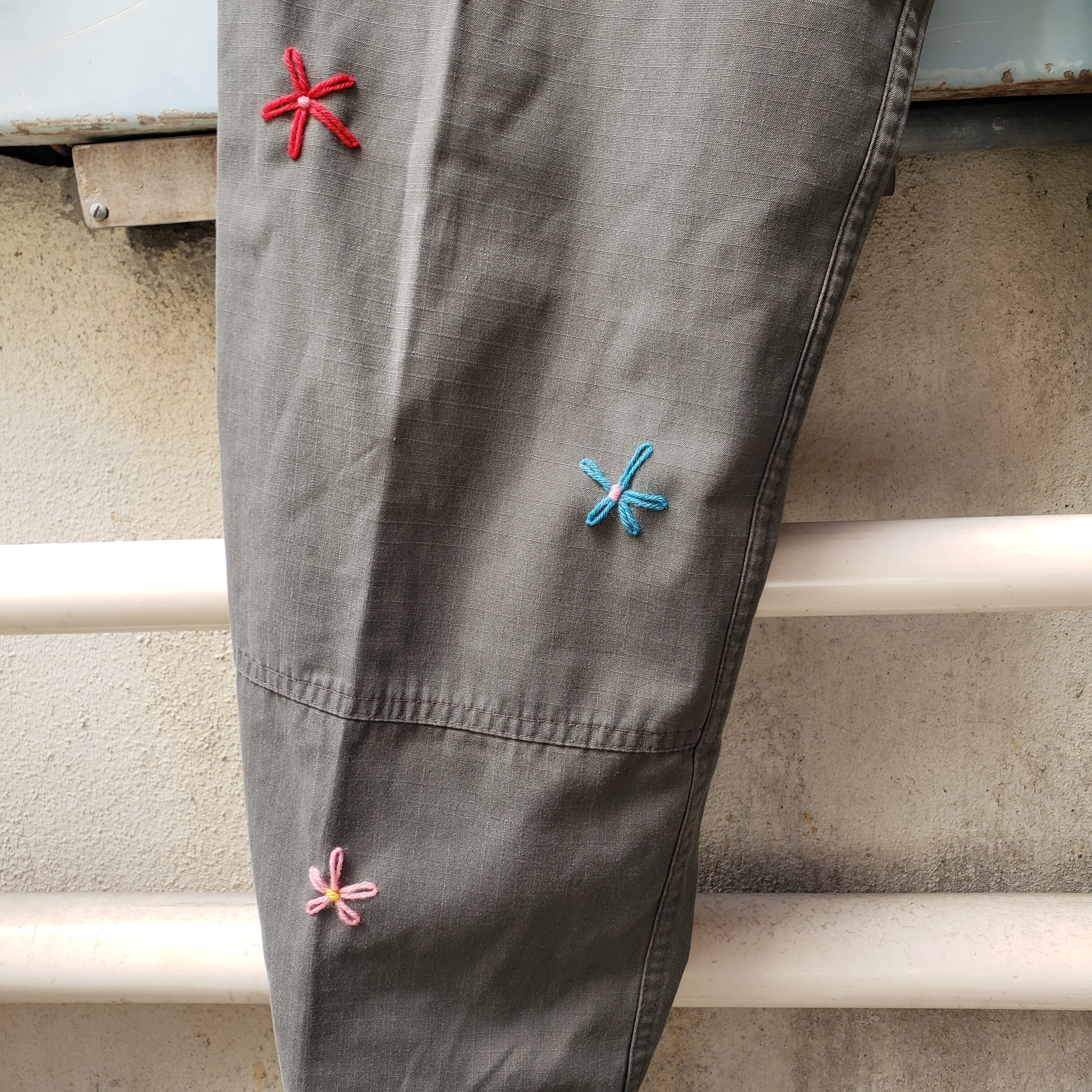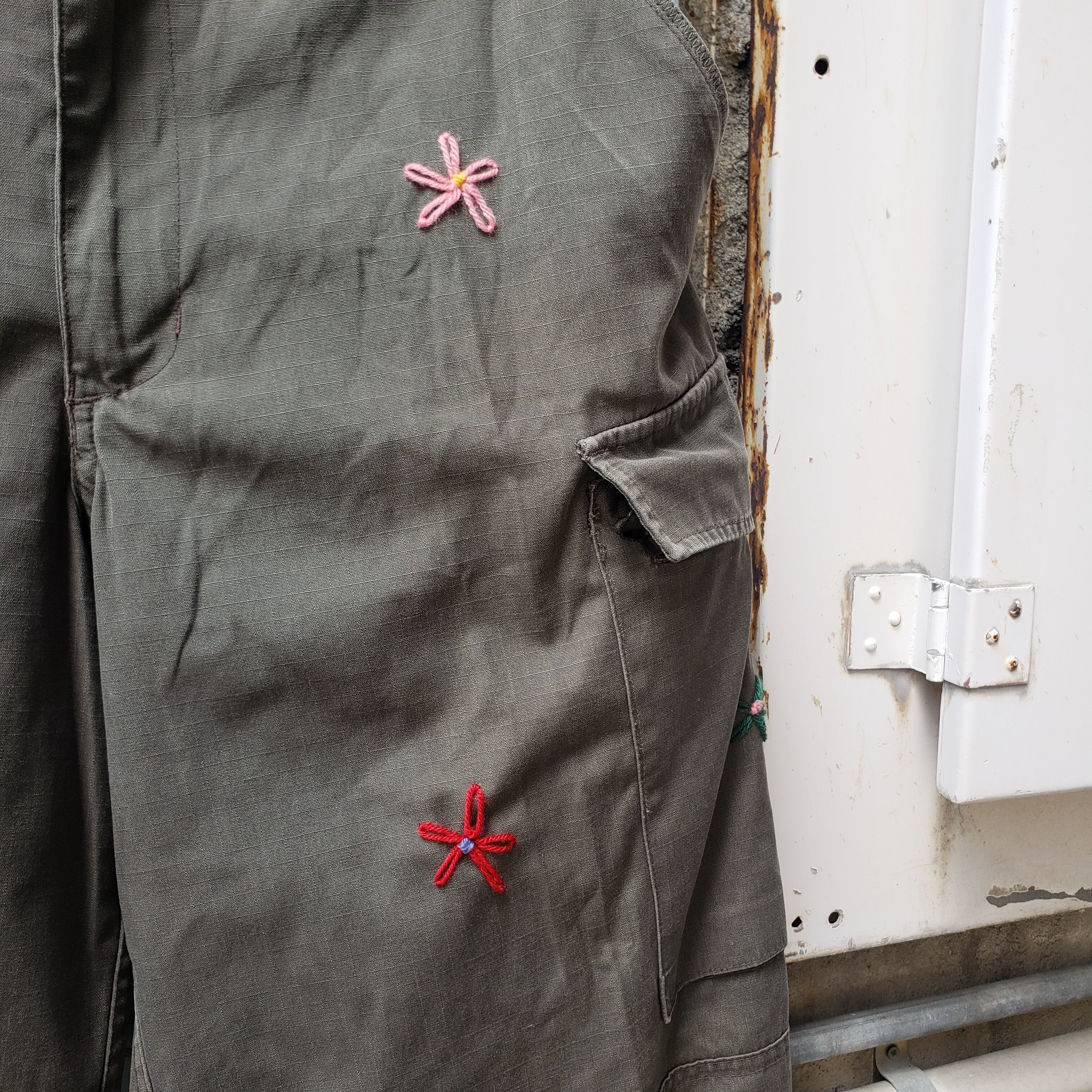 手縫い花刺繍が施された一点物となります。