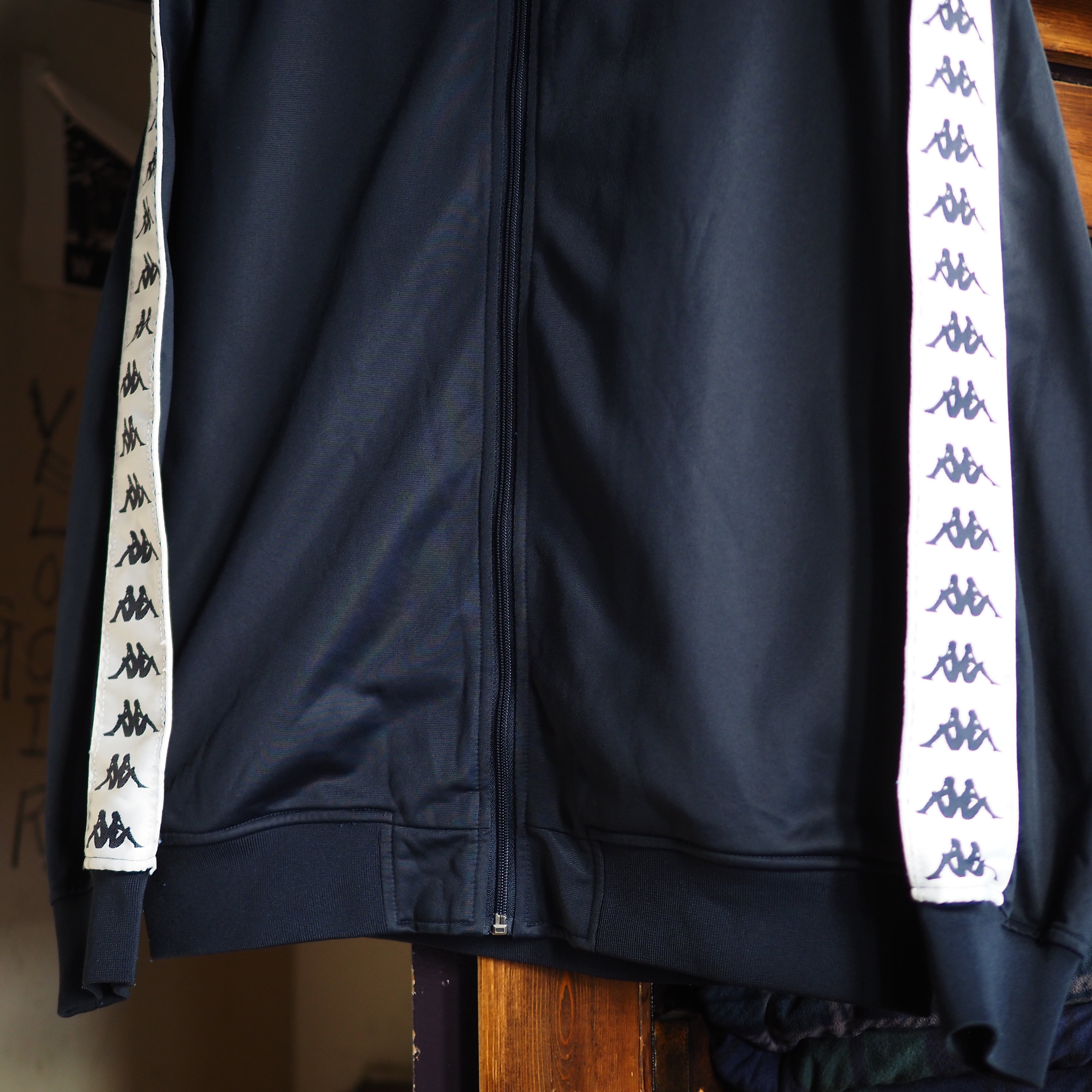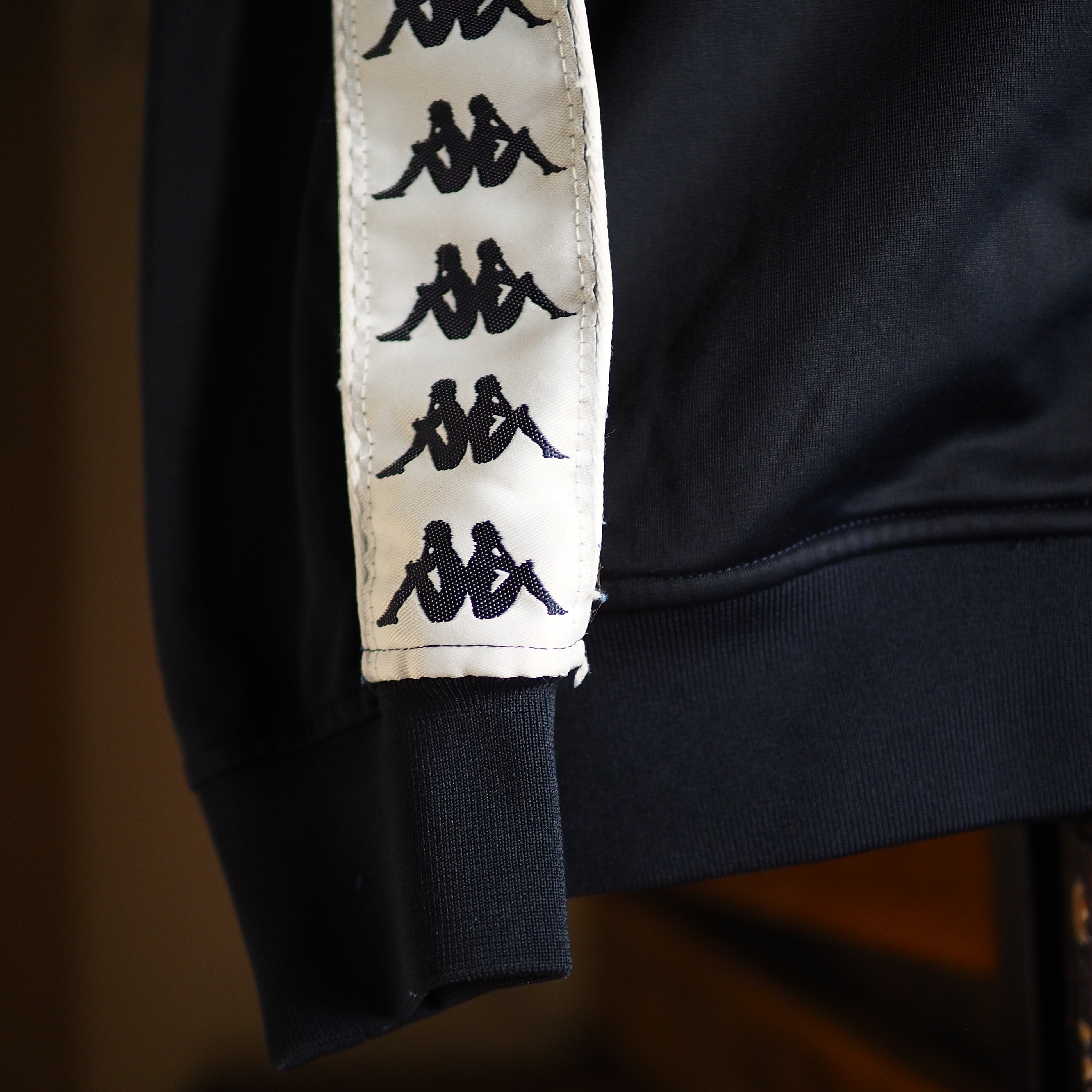 ネイビーカラーにスリーブに羅列されたKAPPAのロゴが映えるオールド感溢れる雰囲気。