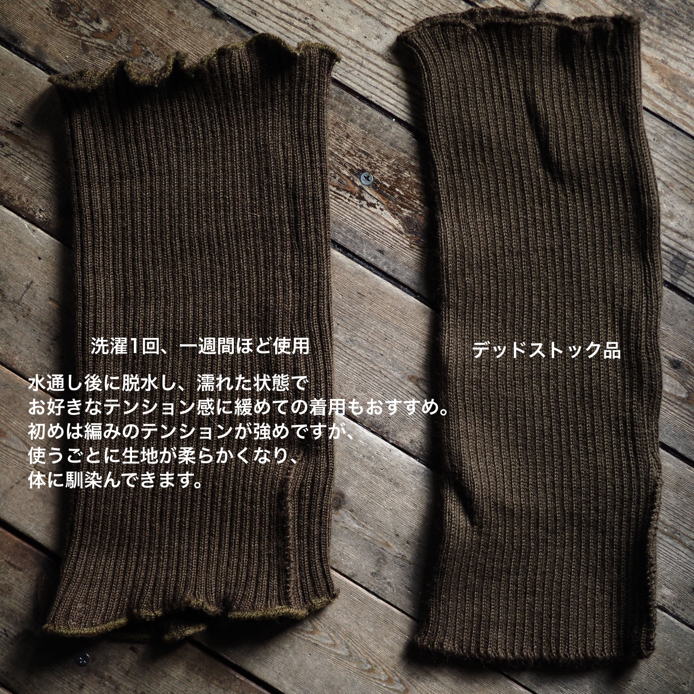 初めは編みのテンションがキツめですが、着用していくうちにすぐに柔らかくなり、体に馴染んできます。